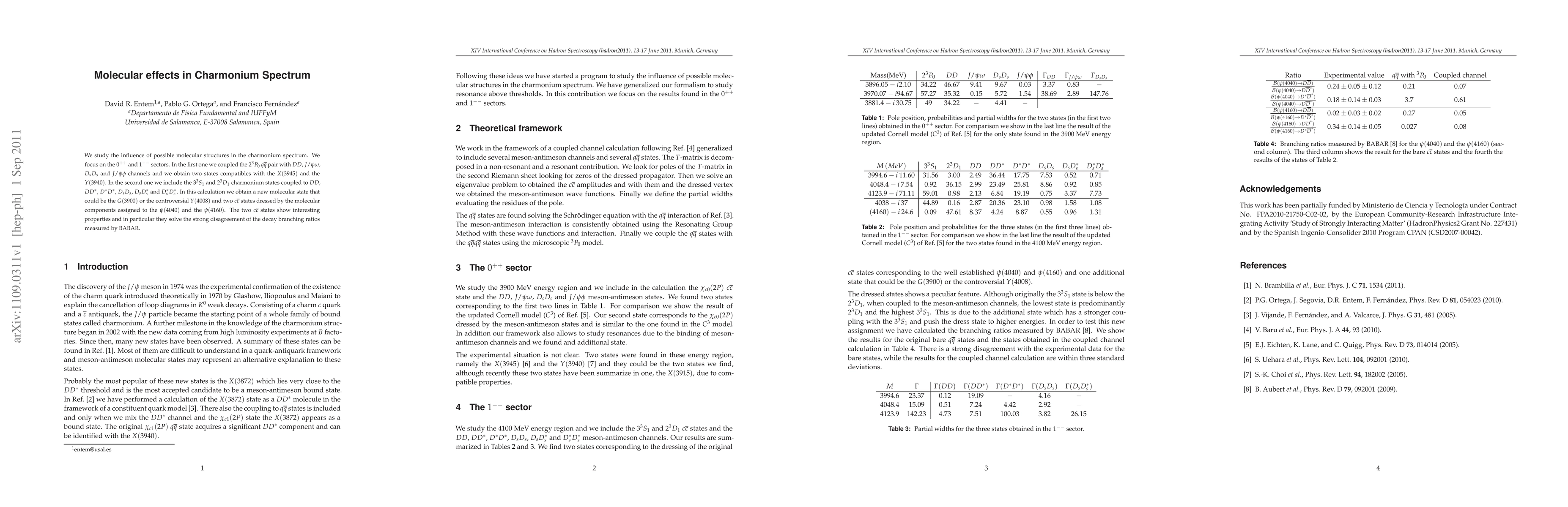 Researchers investigate molecular effects in charmonium spectrum, discovering new states like G(3900) and Y(4008), which resolve discrepancies in decay branching ratios.