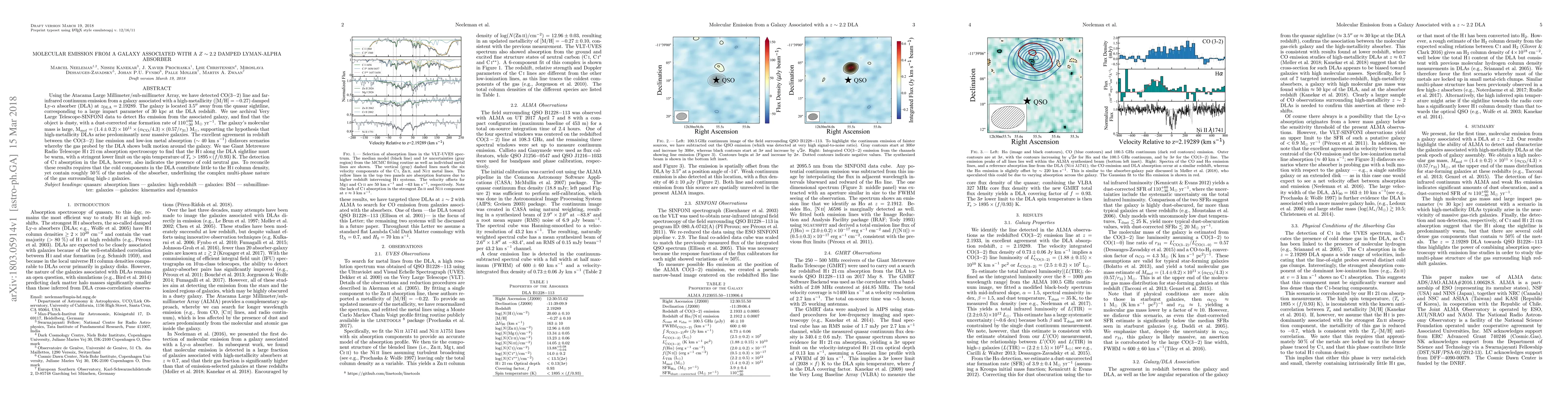 Using the Atacama Large Millimeter/sub-millimeter Array, we have detected CO(3-2) line and far-infrared continuum emission from a galaxy associated with a high-metallicity ([M/H] = -0.27) damped Ly-alpha absorber (DLA) at z =2.19289. The galaxy is located 3.5" away from the quasar sightline, corresponding to a large impact parameter of 30 kpc at the DLA redshift. We use archival Very Large Telescope-SINFONI data to detect Halpha emission from the associated galaxy, and find that the object is dusty, with a dust-corrected star formation rate of 110 +60 -30 Msun/yr. The galaxy's molecular mass is large, Mmol = (1.4 +- 0.2) x 10^11 x (\alpha_CO/4.3) x (0.57/r_31) Msun, supporting the hypothesis that high-metallicity DLAs arise predominantly near massive galaxies. The excellent agreement in redshift between the CO(3-2) line emission and low-ion metal absorption (~40 km/s) disfavors scenarios whereby the gas probed by the DLA shows bulk motion around the galaxy. We use Giant Metrewave Radio Telescope HI 21cm absorption spectroscopy to find that the HI along the DLA sightline must be warm, with a stringent lower limit on the spin temperature of T_s > 1895 x (f/0.93) K. The detection of CI absorption in the DLA, however, also indicates the presence of cold neutral gas. To reconcile these results requires that the cold components in the DLA contribute little to the HI column density, yet contain roughly 50% of the metals of the absorber, underlining the complex multi-phase nature of the gas surrounding high-z galaxies.