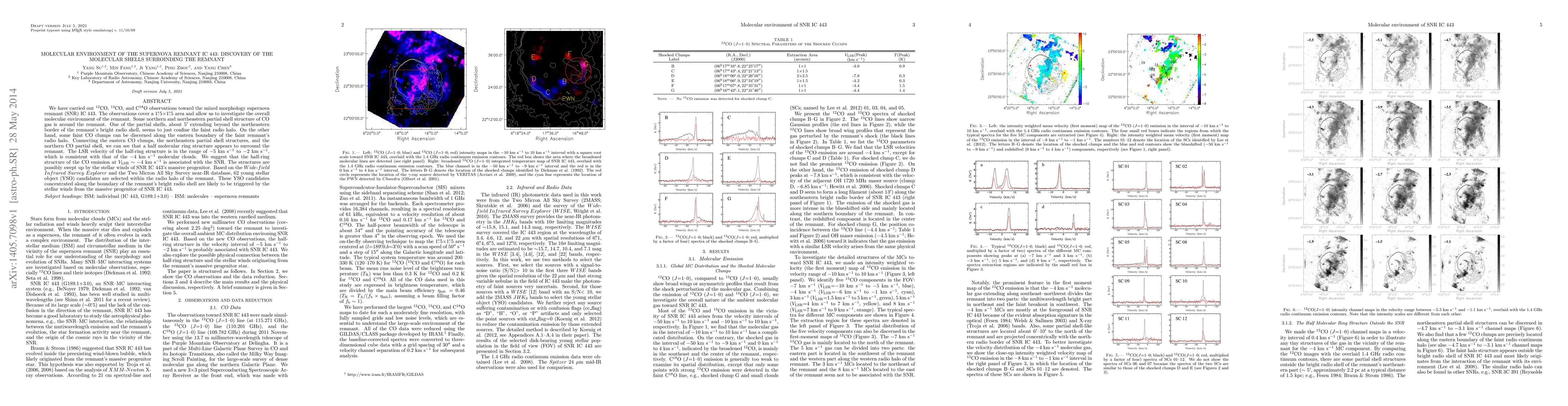 This study reveals the molecular environment of the supernova remnant IC 443, identifying a half-ring structure of CO gas surrounding the remnant, likely formed by the progenitor star's stellar winds. Additionally, 62 young stellar object candidates within the radio halo suggest star formation triggered by the remnant's progenitor.