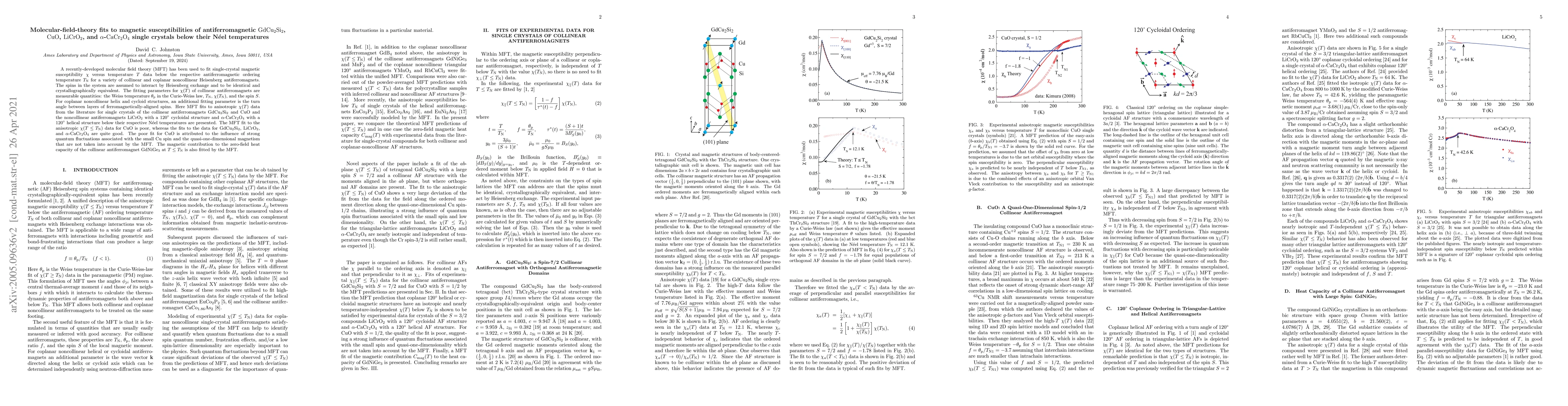 A recently-developed molecular field theory (MFT) has been used to fit single-crystal magnetic susceptibility chi versus temperature T data below the respective antiferromagnetic ordering temperatures TN for a variety of collinear and coplanar noncollinear Heisenberg antiferromagnets. The spins in the system are assumed to interact by Heisenberg exchange and to be identical and crystallographically equivalent. The fitting parameters for chi(T) of collinear antiferromagnets are measurable quantities: the Weiss temperature theta_p in the Curie-Weiss law, TN, chi(TN), and the spin S. For coplanar noncollinear helix and cycloid structures, an additional fitting parameter is the turn angle between layers of ferromagnetically-aligned spins. Here MFT fits to anisotropic chi(T) data from the literature for single crystals of the collinear antiferromagnets GdCu2Si2 and CuO and the noncollinear antiferromagnets LiCr2As2 with a 120 degree cycloidal structure and alpha-CaCr2O4 with a 120 degree helical structure below their respective Neel temperatures are presented. The MFT fit to the anisotropic chi(T < TN) data for CuO is poor, whereas the fits to the data for GdCu2Si2, LiCrO2, and alpha-CaCr2O4 are quite good. The poor fit for CuO is attributed to the influence of strong quantum fluctuations associated with the small Cu spin and the quasi-one-dimensional magnetism that are not taken into account by the MFT. The magnetic contribution to the zero-field heat capacity of the collinear antiferromagnet GdNiGe3 at T < TN is also fitted by the MFT.