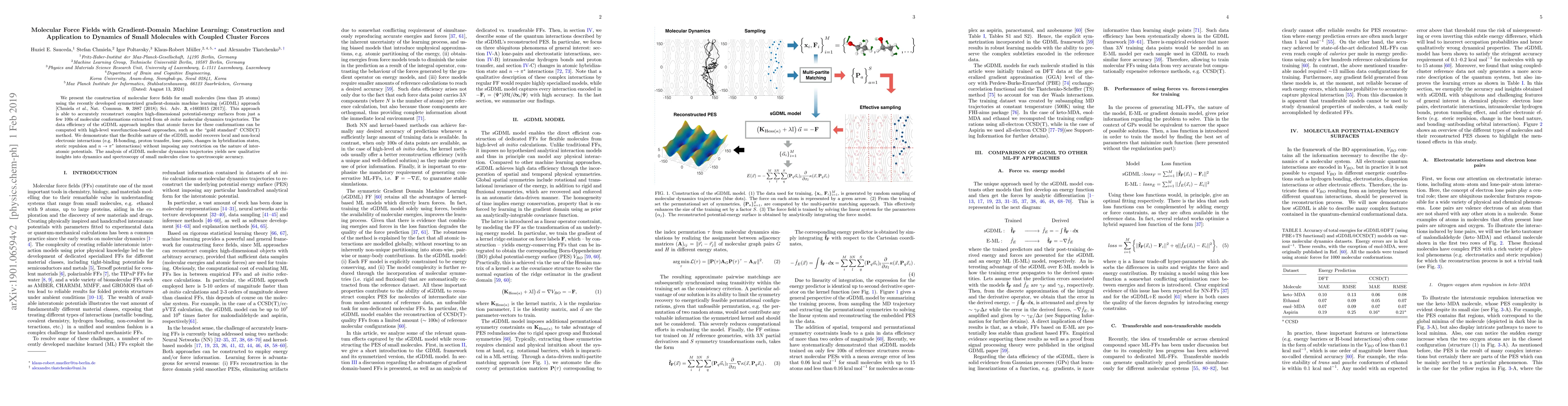 This paper constructs molecular force fields for small molecules using gradient-domain machine learning (sGDML), demonstrating high accuracy in reconstructing potential energy surfaces from limited conformations. The approach captures complex interactions and provides insights into molecular dynamics with spectroscopic accuracy.