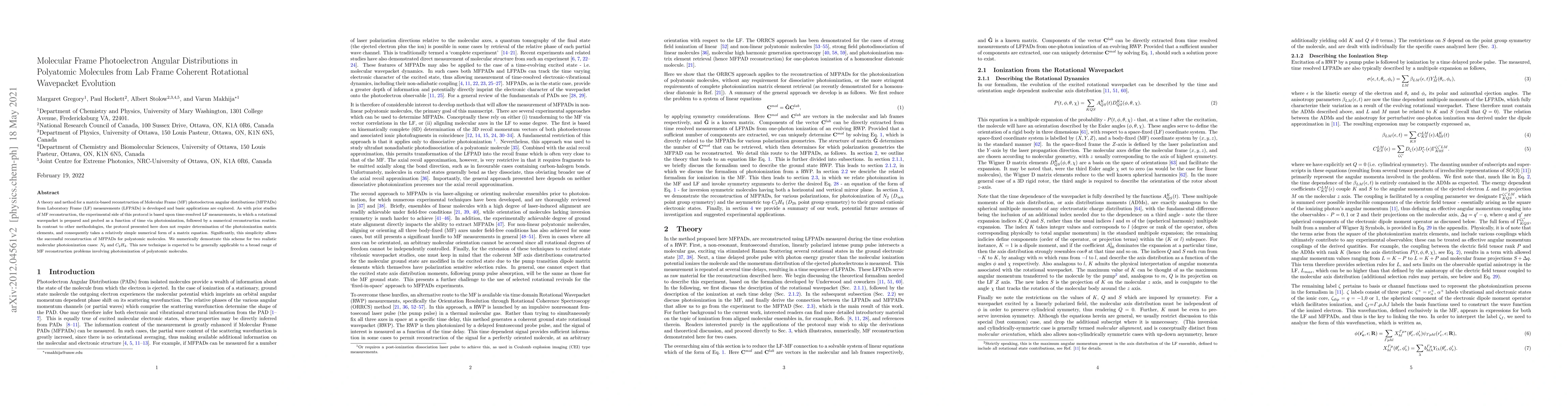 The application of a matrix-based reconstruction protocol for obtaining Molecular Frame (MF) photoelectron angular distributions (MFPADs) from laboratory frame (LF) measurements (LFPADs) is explored. Similarly to other recent works on the topic of MF reconstruction, this protocol makes use of time-resolved LF measurements, in which a rotational wavepacket is prepared and probed via photoionization, followed by a numerical reconstruction routine; however, in contrast to other methodologies, the protocol developed herein does not require determination of photoionization matrix elements, and consequently takes a relatively simple numerical form (matrix transform making use of the Moore-Penrose inverse). Significantly, the simplicity allows application of the method to the successful reconstruction of MFPADs for polyatomic molecules. The scheme is demonstrated numerically for two realistic cases, $N_2$ and $C_2H_4$. The new technique is expected to be generally applicable for a range of MF reconstruction problems involving photoionization of polyatomic molecules.