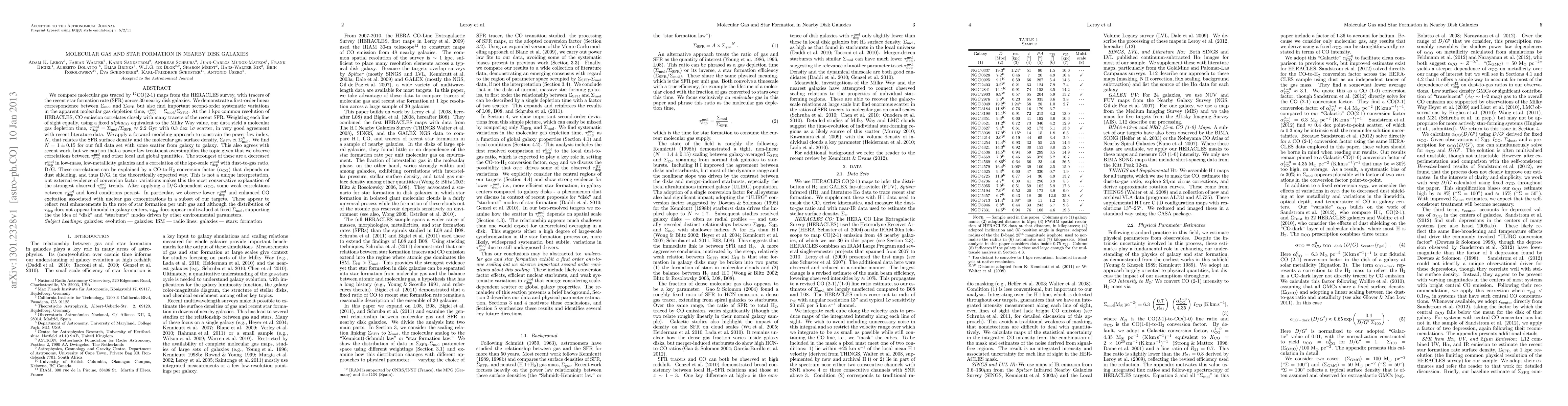 This paper investigates the relationship between molecular gas and star formation in 30 nearby disk galaxies, finding a linear correlation between molecular gas and star formation rates. It highlights systematic variations in molecular gas depletion times and suggests that these variations are influenced by factors such as galaxy mass, metallicity, and dust-to-gas ratios, indicating complex star formation dynamics.