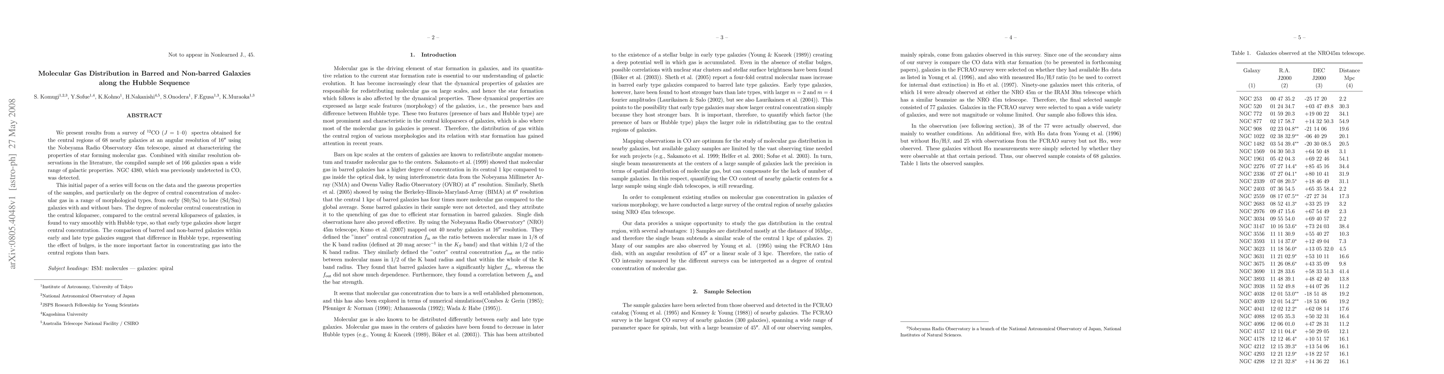 This study investigates the molecular gas distribution in 166 galaxies, revealing a smooth variation in central concentration of gas with Hubble type, where early-type galaxies exhibit greater central concentration. The analysis suggests that the effect of bulges is more significant than bars in concentrating gas towards the galactic center.