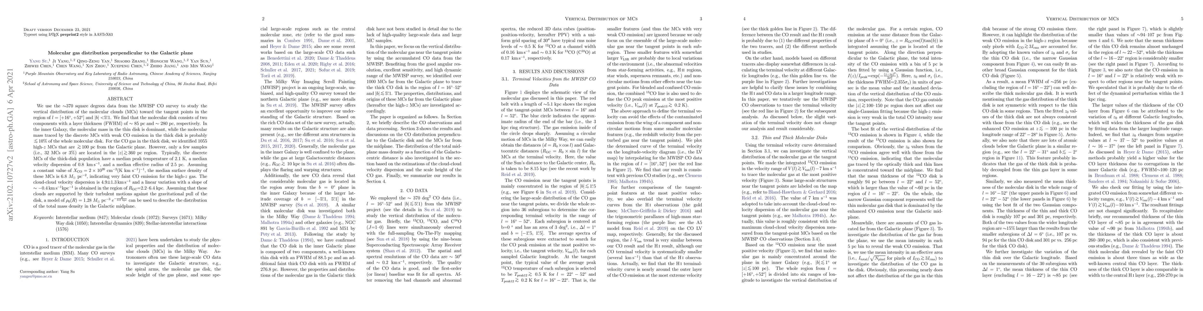 We use the ~370 square degrees data from the MWISP CO survey to study the vertical distribution of the molecular clouds (MCs) toward the tangent points in the region of l=[16,52]deg and |b|<5.1deg. The molecular disk consists of two components with the layer thickness (FWHM) of ~85pc and ~280pc, respectively. In the inner Galaxy, the molecular mass in the thin disk is dominant, while the molecular mass traced by the discrete MCs with weak CO emission in the thick disk is probably <10% of the whole molecular disk. For the CO gas in the thick disk, we identified 1055 high-z MCs that are >100pc from the Galactic plane. However, only a few samples (i.e., 32 MCs) are located in the |z|>360pc region. Typically, the discrete MCs of the thick disk population have a median peak temperature of 2.1 K, a median velocity dispersion of 0.8km/s, and a median effective radius of 2.5pc. The median surface density of these MCs is 6.8 Msun/pc^2, indicating very faint CO emission for these high-z MCs. The cloud-cloud velocity dispersion is 4.9+-1.3 km/s and a linear variation with a slope of -0.4 km/s/kpc is obtained in the region of R_GC=2.2-6.4kpc. Assuming that these clouds are supported by their turbulent motions against the gravitational pull of the disk, a model of rho0(R) = 1.28exp(-R/3.2kpc) Msun/pc^3 can be used to describe the distribution of the total mass density in the Galactic midplane.