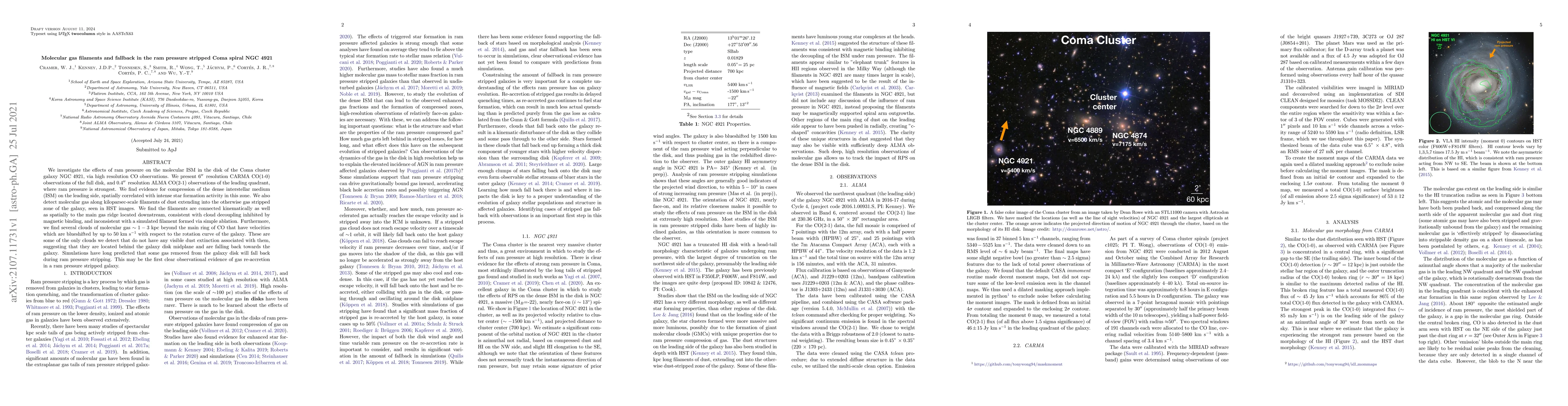 We investigate the effects of ram pressure on the molecular ISM in the disk of the Coma cluster galaxy NGC 4921, via high resolution CO observations. We present 6" resolution CARMA CO(1-0) observations of the full disk, and 0.4" resolution ALMA CO(2-1) observations of the leading quadrant, where ram pressure is strongest. We find evidence for compression of the dense interstellar medium (ISM) on the leading side, spatially correlated with intense star formation activity in this zone. We also detect molecular gas along kiloparsec-scale filaments of dust extending into the otherwise gas stripped zone of the galaxy, seen in HST images. We find the filaments are connected kinematically as well as spatially to the main gas ridge located downstream, consistent with cloud decoupling inhibited by magnetic binding, and inconsistent with a simulated filament formed via simple ablation. Furthermore, we find several clouds of molecular gas $\sim 1-3$ kpc beyond the main ring of CO that have velocities which are blueshifted by up to 50 km s$^{-1}$ with respect to the rotation curve of the galaxy. These are some of the only clouds we detect that do not have any visible dust extinction associated with them, suggesting that they are located behind the galaxy disk midplane and are falling back towards the galaxy. Simulations have long predicted that some gas removed from the galaxy disk will fall back during ram pressure stripping. This may be the first clear observational evidence of gas re-accretion in a ram pressure stripped galaxy.