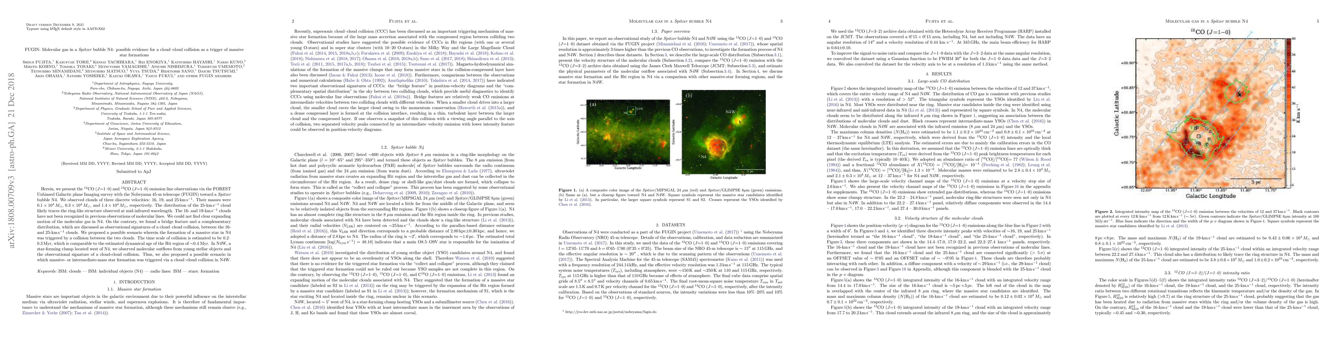 This paper presents observations of molecular gas in Spitzer bubble N4, suggesting evidence for cloud-cloud collisions as a trigger for massive star formation. The study found a bridge feature and complementary distribution indicative of such collisions, proposing that these interactions may have initiated star formation in both N4 and N4W.