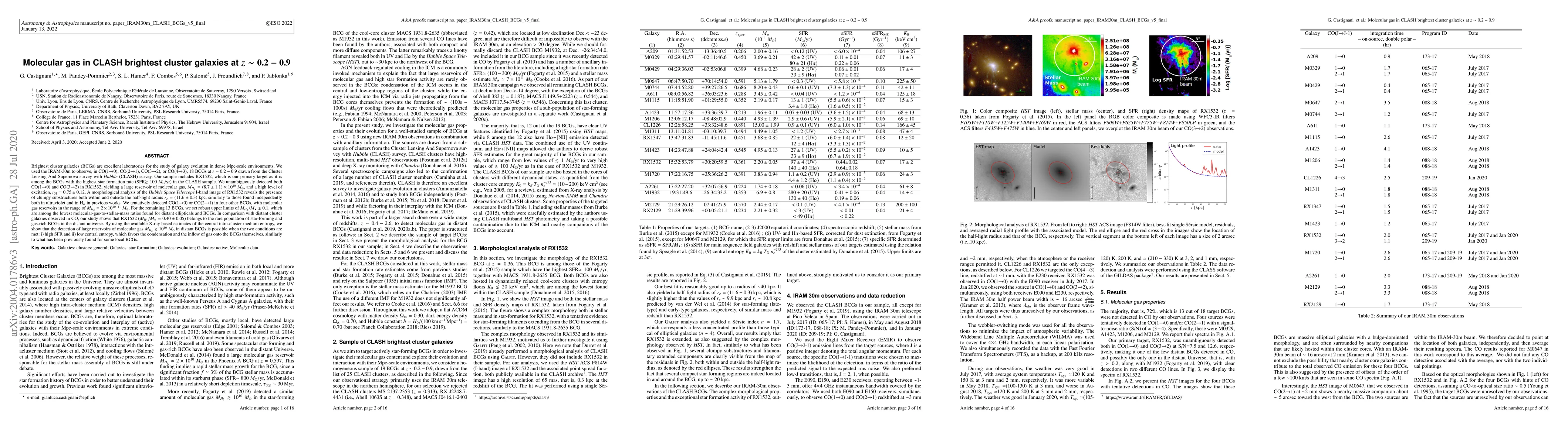This work is distinguished by its comprehensive approach to studying CO emission in a representative sample of CLASH BCGs, offering new constraints on environmental effects on galaxy evolution.