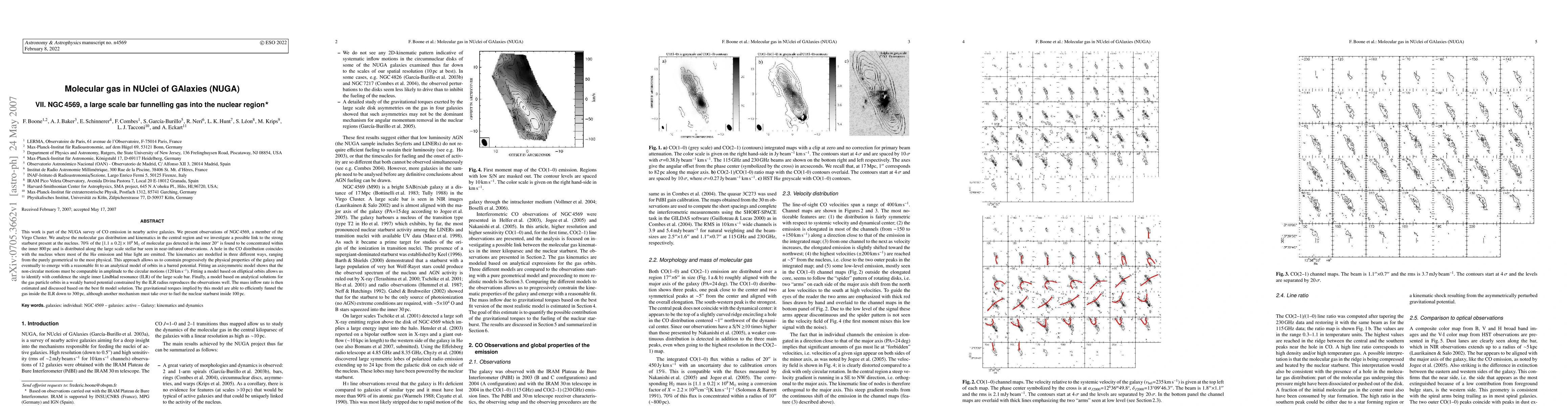 This work is part of the NUGA survey of CO emission in nearby active galaxies. We present observations of NGC4569, a member of the Virgo Cluster. We analyse the molecular gas distribution and kinematics in the central region and we investigate a possible link to the strong starburst present at the nucleus. 70% of the 1.1x10^9 Msolar of molecular gas detected in the inner 20" is found to be concentrated within the inner 800 pc and is distributed along the large scale stellar bar seen in near-infrared observations. A hole in the CO distribution coincides with the nucleus where most of the Halpha emission and blue light are emitted. The kinematics are modelled in three different ways, ranging from the purely geometrical to the most physical. This approach allows us to constrain progressively the physical properties of the galaxy and eventually to emerge with a reasonable fit to an analytical model of orbits in a barred potential. Fitting an axisymmetric model shows that the non-circular motions must be comparable in amplitude to the circular motions (120 km/s). Fitting a model based on elliptical orbits allows us to identify with confidence the single inner Lindblad resonance (ILR) of the large scale bar. Finally, a model based on analytical solutions for the gas particle orbits in a weakly barred potential constrained by the ILR radius reproduces the observations well. The mass inflow rate is then estimated and discussed based on the best fit model solution. The gravitational torques implied by this model are able to efficiently funnel the gas inside the ILR down to 300 pc, although another mechanism must take over to fuel the nuclear starburst inside 100 pc.