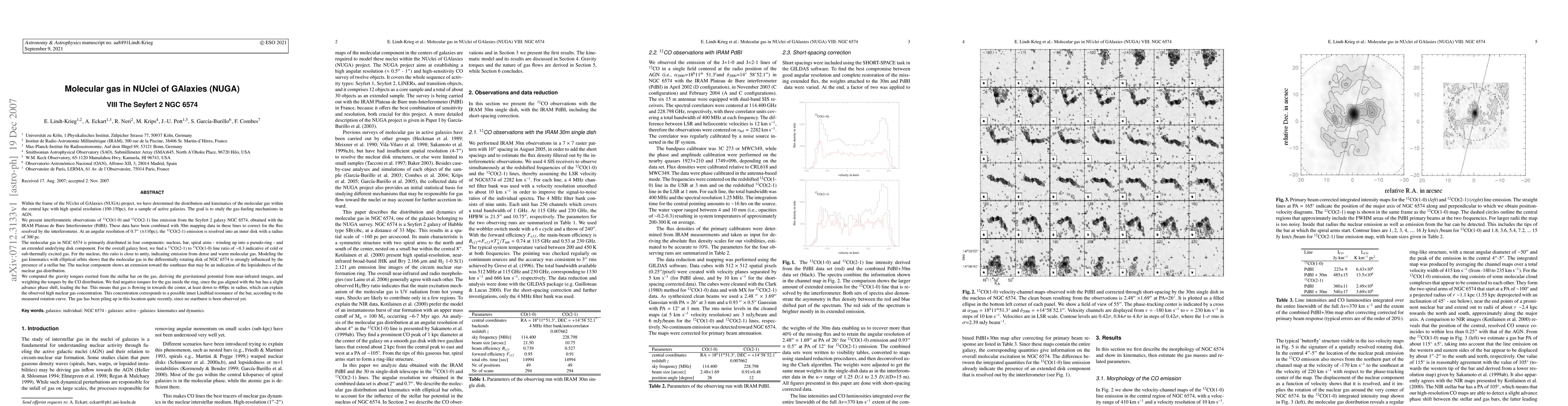 Within the frame of the NUclei of GAlaxies (NUGA) project, we have determined the distribution and kinematics of the molecular gas within the central kpc with high spatial resolution (100-150pc), for a sample of active galaxies. The goal is to study the gas-fueling mechanisms in AGN. We present interferometric observations of 12CO(1-0) and 12CO(2-1) line emission from the Seyfert2 galaxy NGC6574, obtained with the IRAM Plateau de Bure Interferometer (PdBI). These data have been combined with 30m mapping data in these lines to correct for the flux resolved by the interferometer. At an angular resolution of 0.7'' (about 110pc), the 12CO(2-1) emission is resolved into an inner disk with a radius of 300pc.