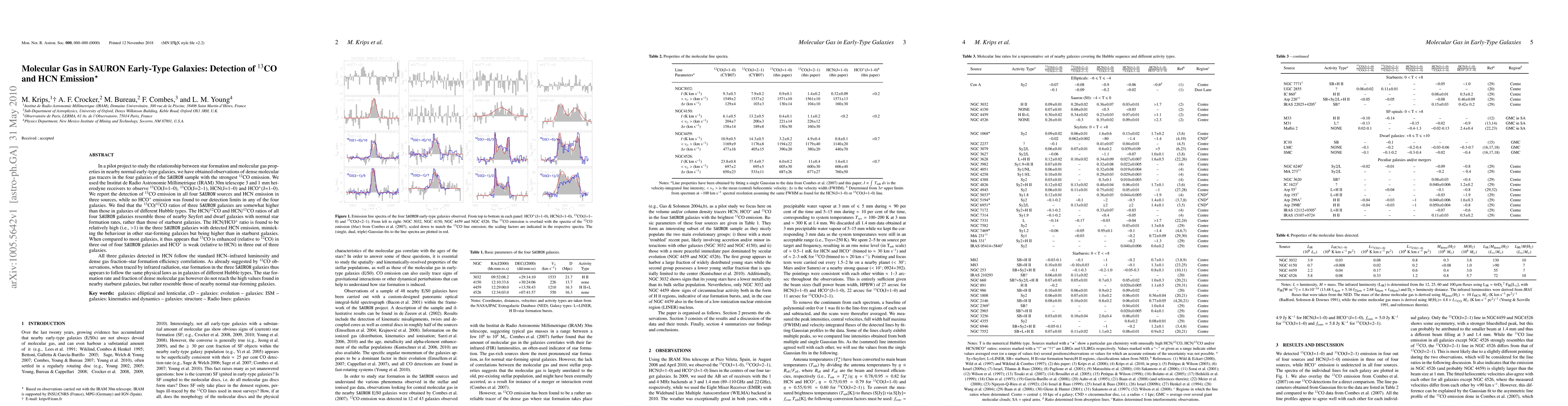 This study detected 13CO and HCN emissions in four early-type galaxies from the SAURON sample, revealing enhanced 13CO relative to 12CO and weak HCO+ relative to HCN. The galaxies' star formation properties align with normal star-forming galaxies rather than starbursts, indicating typical star formation processes despite the presence of molecular gas.
