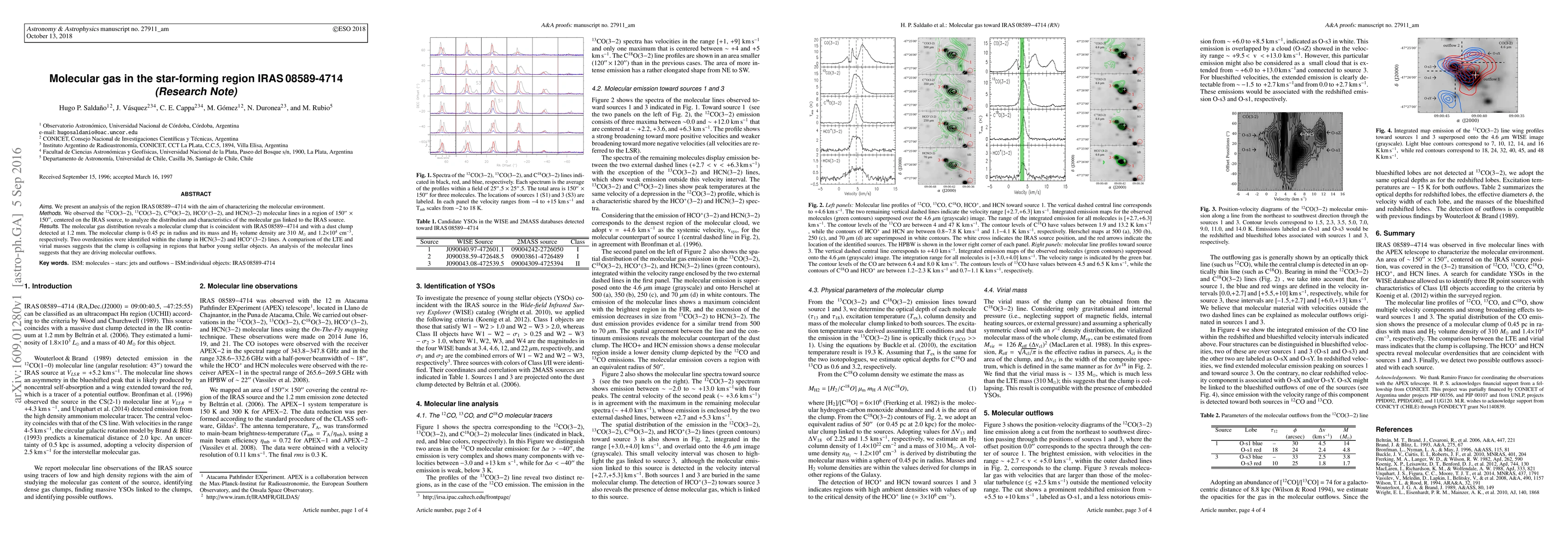 We present an analysis of the region IRAS 08589-4714 with the aim of characterizing the molecular environment. We observed the CO(3-2), ^{13}CO(3-2), C^{18}O(3-2), HCO+(3-2), and HCN(3-2) molecular lines in a region of 150" x 150", centered on the IRAS source, to analyze the distribution and characteristics of the molecular gas linked to the IRAS source. The molecular gas distribution reveals a molecular clump that is coincident with IRAS 08589-4714 and with a dust clump detected at 1.2 mm. The molecular clump is 0.45 pc in radius and its mass and H_2 volume density are 310 Mo and 1.2 x 10^4 cm^{-3}, respectively. Two overdensities were identified within the clump in HCN and HCO lines. A comparison of the LTE and virial masses suggests that the clump is collapsing in regions that harbor young stellar objects. An analysis of the molecular lines suggests that they are driving molecular outflows.