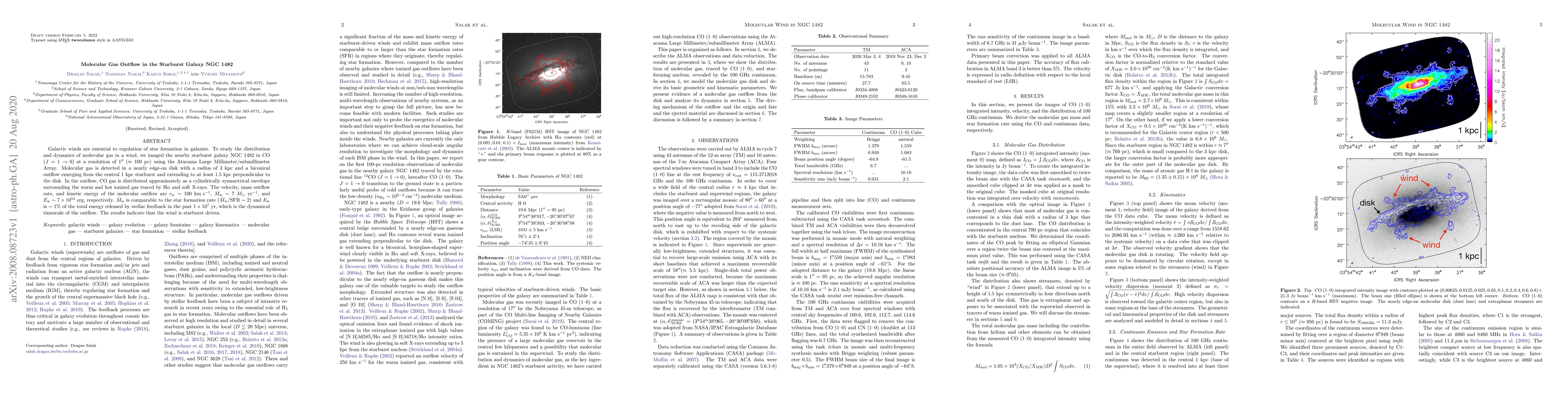 This work is novel in confirming a molecular gas outflow in NGC 1482, providing insights into starburst-driven winds, and offering a comprehensive analysis of the outflow's kinematics and energetics relative to the SFR.