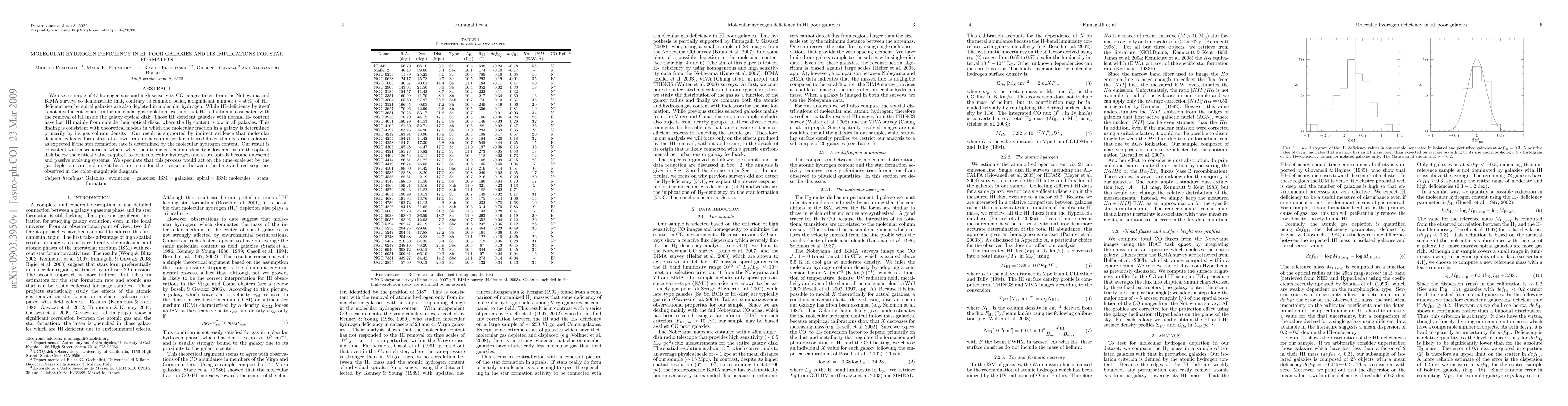 We use a sample of 47 homogeneous and high sensitivity CO images taken from the Nobeyama and BIMA surveys to demonstrate that, contrary to common belief, a significant number (~40%) of HI-deficient nearby spiral galaxies are also depleted in molecular hydrogen. While HI-deficiency by itself is not a sufficient condition for molecular gas depletion, we find that H2 reduction is associated with the removal of HI inside the galaxy optical disk. Those HI-deficient galaxies with normal H2 content have lost HI mainly from outside their optical disks, where the H2 content is low in all galaxies. This finding is consistent with theoretical models in which the molecular fraction in a galaxy is determined primarily by its gas column density. Our result is supported by indirect evidence that molecular deficient galaxies form stars at a lower rate or have dimmer far infrared fluxes than gas rich galaxies, as expected if the star formation rate is determined by the molecular hydrogen content. Our result is consistent with a scenario in which, when the atomic gas column density is lowered inside the optical disk below the critical value required to form molecular hydrogen and stars, spirals become quiescent and passive evolving systems. We speculate that this process would act on the time-scale set by the gas depletion rate and might be a first step for the transition between the blue and red sequence observed in the color-magnitude diagram.