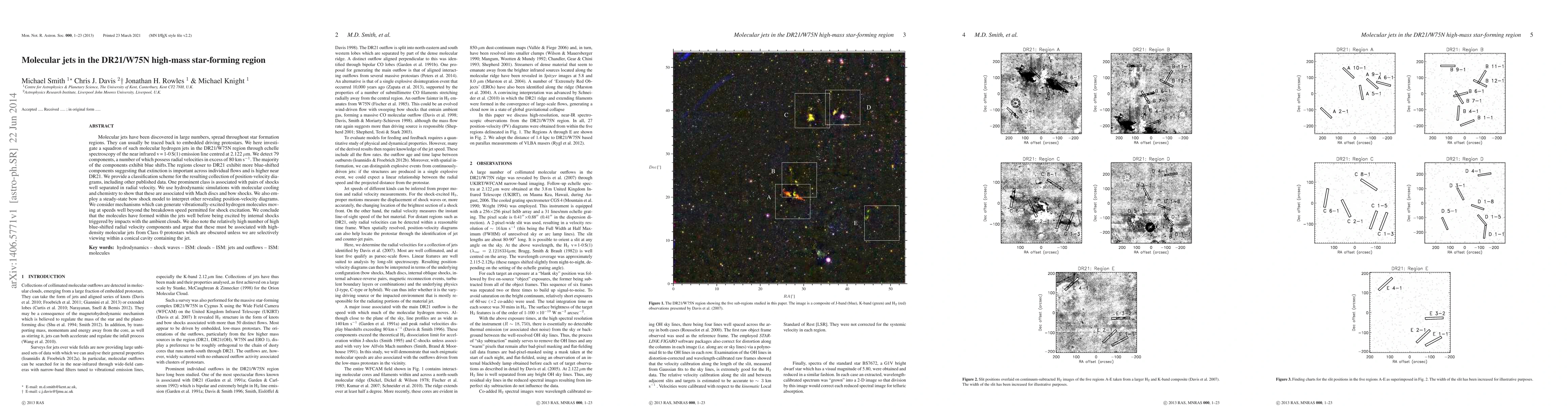 Molecular jets have been discovered in large numbers, spread throughout star formation regions. They can usually be traced back to embedded driving protostars. We here investigate a squadron of such molecular hydrogen jets in the DR21/W75N region through echelle spectroscopy of the near infrared v=1-0 S(1) emission line centred at 2.122 microns. We detect 79 components, a number of which possess radial velocities in excess of 80 km/s. The majority of the components exhibit blue shifts.The regions closer to DR21 exhibit more blueshifted components suggesting that extinction is important across individual flows and is higher near DR21. We provide a classification scheme for the resulting collection of position-velocity diagrams, including other published data. One prominent class is associated with pairs of shocks well separated in radial velocity. We use hydrodynamic simulations with molecular cooling and chemistry to show that these are associated with Mach discs and bow shocks. We also employ a steady-state bow shock model to interpret other revealing position-velocity diagrams. We consider mechanisms which can generate vibrationally-excited hydrogen molecules moving at speeds well beyond the breakdown speed permitted for shock excitation. We conclude that the molecules have formed within the jets well before being excited by internal shocks triggered by impacts with the ambient clouds. We also note the relatively high number of high blueshifted radial velocity components and argue that these must be associated with high-density molecular jets from Class 0 protostars which are obscured unless we are selectively viewing within a conical cavity containing the jet.