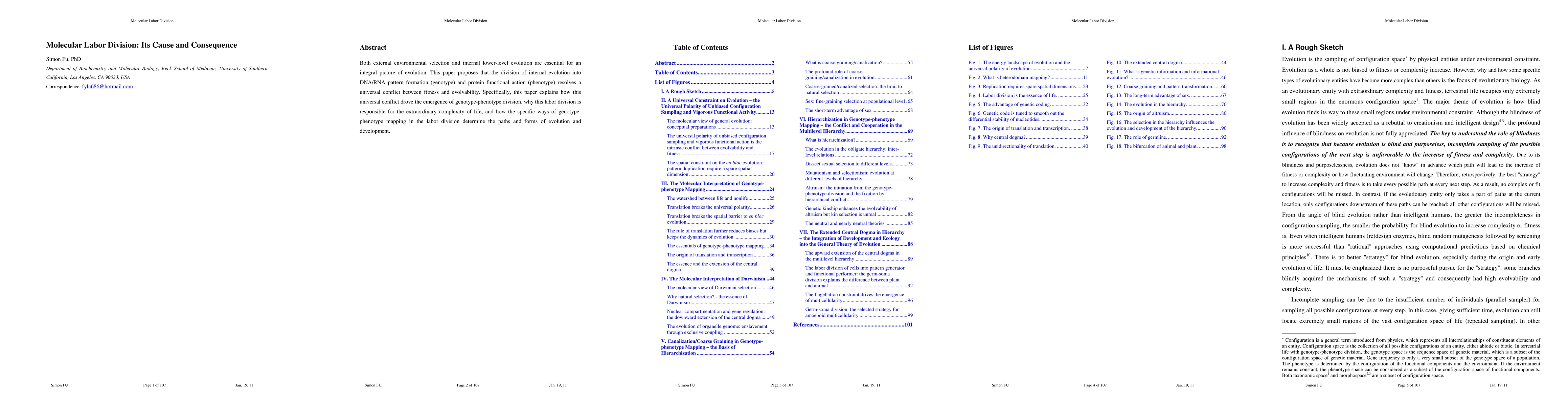 This paper argues that the division of molecular evolution into genotype and phenotype resolves the conflict between fitness and evolvability, leading to life's complexity, and determines the paths of evolution and development. The genotype-phenotype labor division is a key driver of biological complexity and evolution.