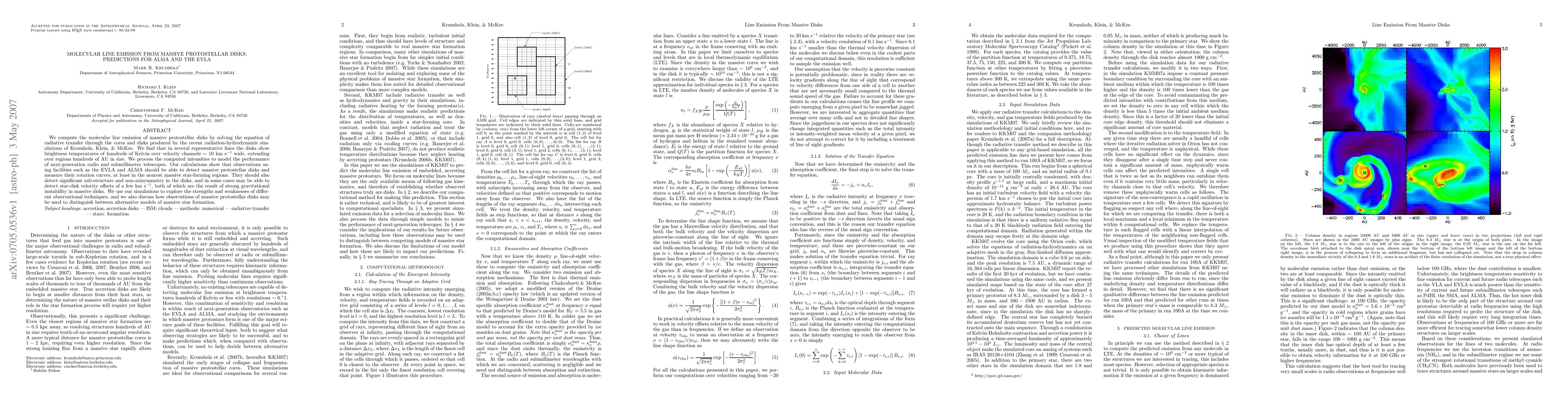 We compute the molecular line emission of massive protostellar disks by solving the equation of radiative transfer through the cores and disks produced by the recent radiation-hydrodynamic simulations of Krumholz, Klein, & McKee. We find that in several representative lines the disks show brightness temperatures of hundreds of Kelvin over velocity channels ~10 km s^-1 wide, extending over regions hundreds of AU in size. We process the computed intensities to model the performance of next-generation radio and submillimeter telescopes. Our calculations show that observations using facilities such as the EVLA and ALMA should be able to detect massive protostellar disks and measure their rotation curves, at least in the nearest massive star-forming regions. They should also detect significant sub-structure and non-axisymmetry in the disks, and in some cases may be able to detect star-disk velocity offsets of a few km s^-1, both of which are the result of strong gravitational instability in massive disks. We use our simulations to explore the strengths and weaknesses of different observational techniques, and we also discuss how observations of massive protostellar disks may be used to distinguish between alternative models of massive star formation.