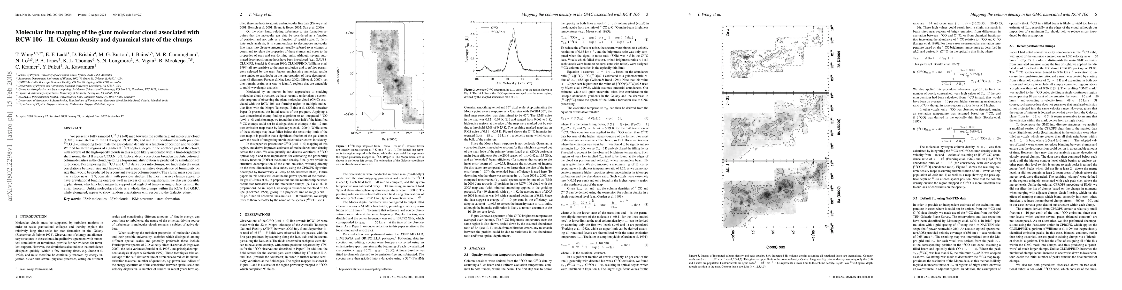 This paper presents a C^{18}O (1-0) map of the RCW 106 GMC, combining it with ^{13}CO (1-0) data to estimate column density and analyze clump dynamics. The study finds a log-normal distribution of column densities and suggests that clumps' luminosities are more sensitive to size than predicted by constant average column density, with some massive clumps possibly exceeding virial equilibrium.