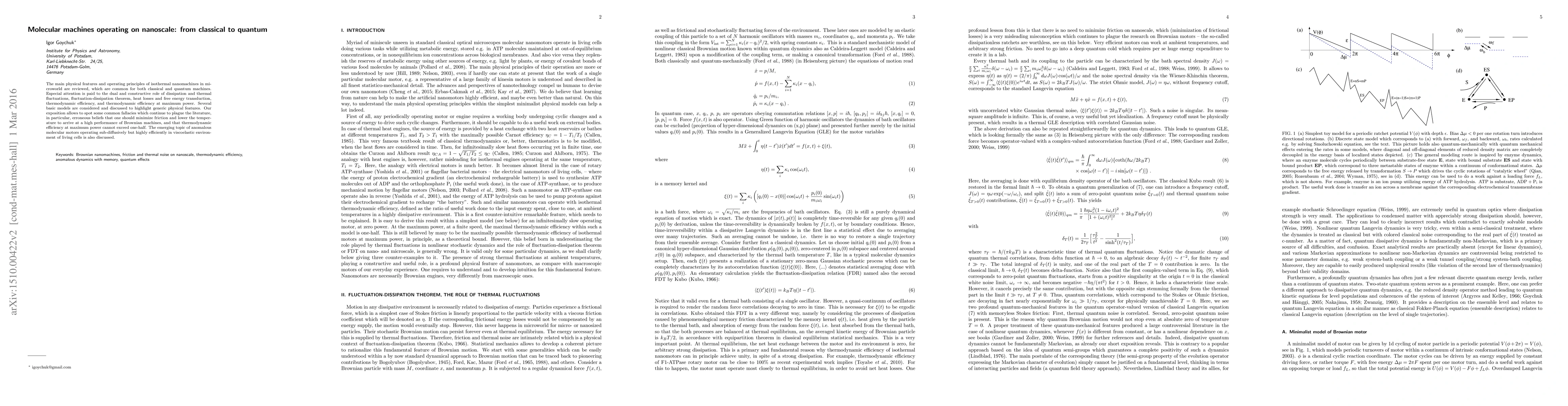 This paper reviews the principles and physical features of isothermal nanomachines, comparing classical and quantum machines, and highlights the roles of dissipation, thermal fluctuations, and thermodynamic efficiency. It corrects common misconceptions about optimizing performance and discusses highly efficient anomalous molecular motors in living cells.