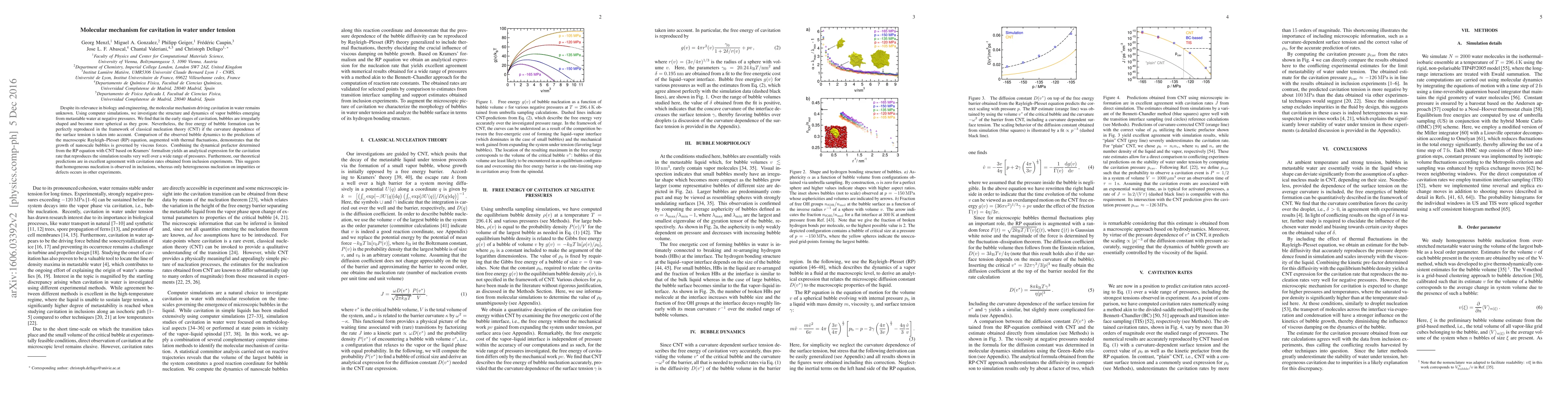 This study elucidates the molecular mechanism of cavitation in water under tension using computer simulations, revealing that bubble formation follows classical nucleation theory when considering surface tension's curvature dependence. The cavitation rate is accurately predicted by combining classical nucleation theory with the Rayleigh-Plesset equation, showing that nanoscale bubble growth is dominated by viscous forces.