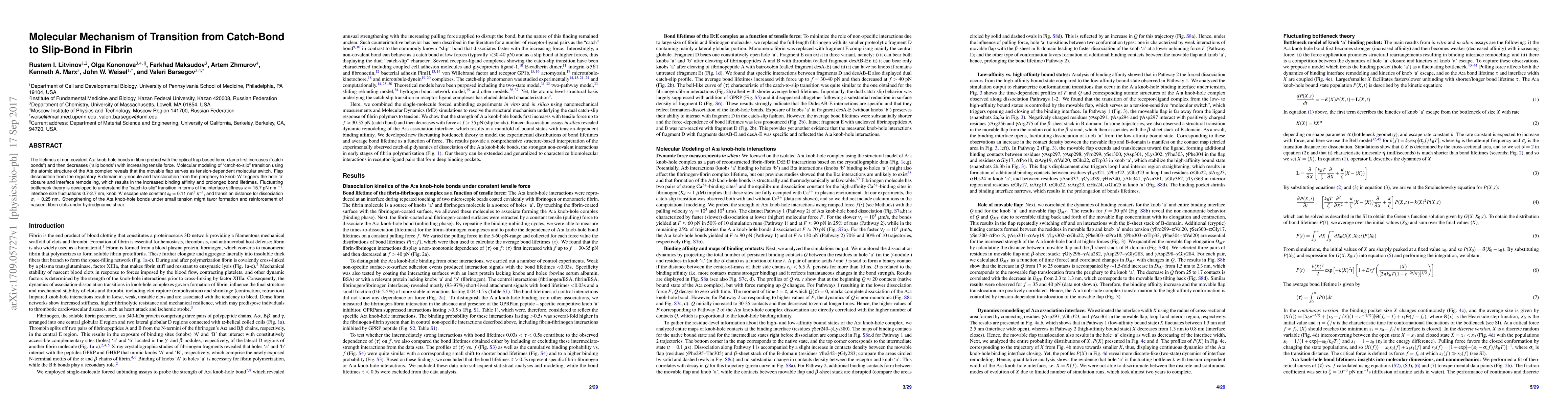This paper investigates the molecular mechanism behind the transition from catch-bond to slip-bond in fibrin, revealing that the movable flap acts as a tension-dependent switch, leading to interface remodeling and fluctuating bottleneck theory parameters that explain the transition. The transition may enhance fibrin clot formation under shear.