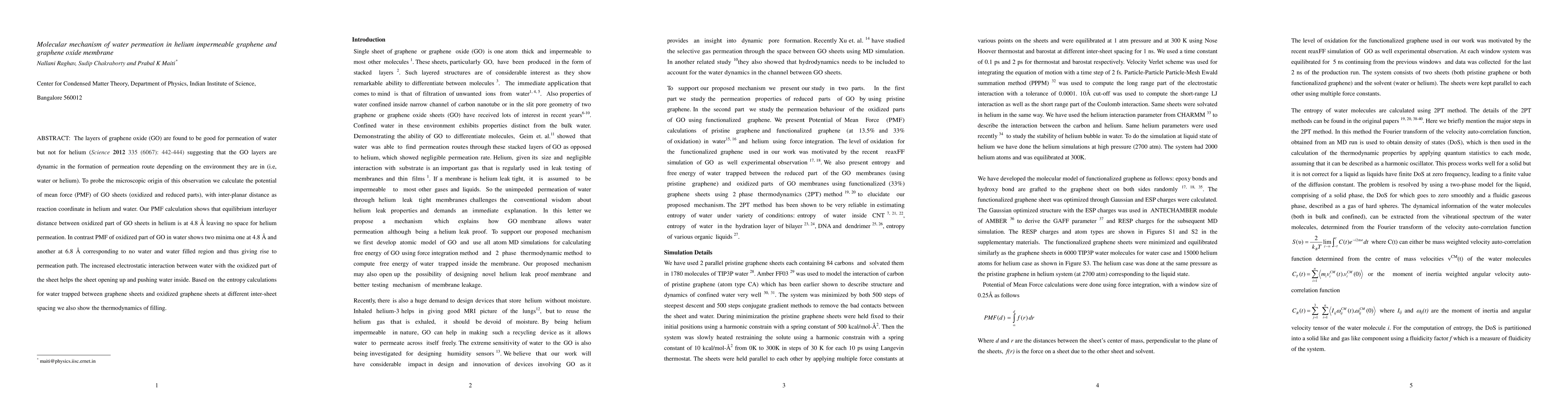 The layers of graphene oxide (GO) are found to be good for permeation of water but not for helium (Science 2012 335 (6067): 442-444) suggesting that the GO layers are dynamic in the formation of permeation route depending on the environment they are in (i.e, water or helium). To probe the microscopic origin of this observation we calculate the potential of mean force (PMF) of GO sheets (oxidized and reduced parts), with inter-planar distance as reaction coordinate in helium and water. Our PMF calculation shows that equilibrium interlayer distance between oxidized part of GO sheets in helium is at 4.8 {\AA} leaving no space for helium permeation. In contrast PMF of oxidized part of GO in water shows two minima one at 4.8 {\AA} and another at 6.8 {\AA} corresponding to no water and water filled region and thus giving rise to permeation path. The increased electrostatic interaction between water with the oxidized part of the sheet helps the sheet opening up and pushing water inside. Based on the entropy calculations for water trapped between graphene sheets and oxidized graphene sheets at different inter-sheet spacing we also show the thermodynamics of filling.