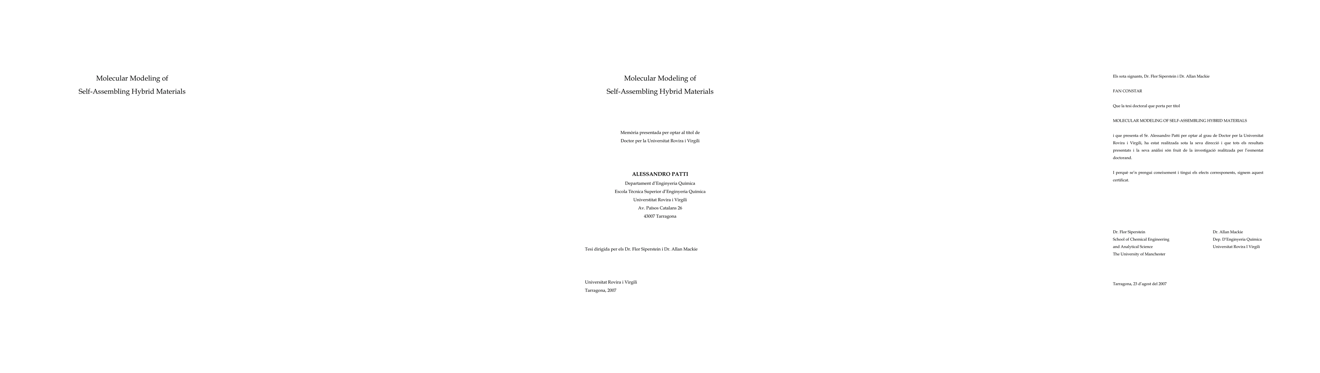 This PhD thesis utilizes lattice Monte Carlo simulations to study self-assembling mesoporous materials from organic-inorganic hybrid precursors. Key findings include conditions favoring periodic ordered structures like hexagonally-ordered cylinders or lamellae, with bridging hydrophilic precursors enabling order over a broader range. The study also evaluates pore characteristics of cylindrical structures and compares phase behavior of different surfactant models, providing insights into material design for mesoporous materials.