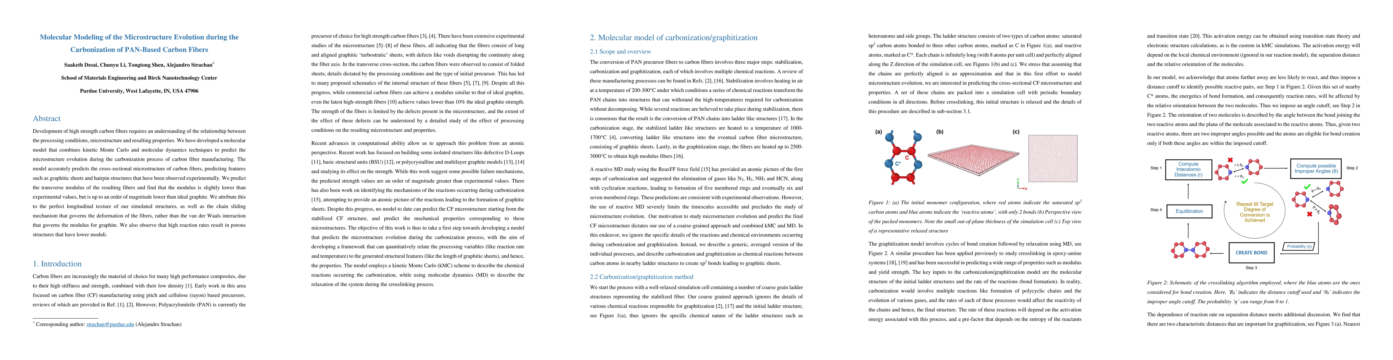Researchers developed a molecular model that accurately predicts the microstructure evolution of carbon fibers during carbonization, revealing features like graphitic sheets and hairpin structures.