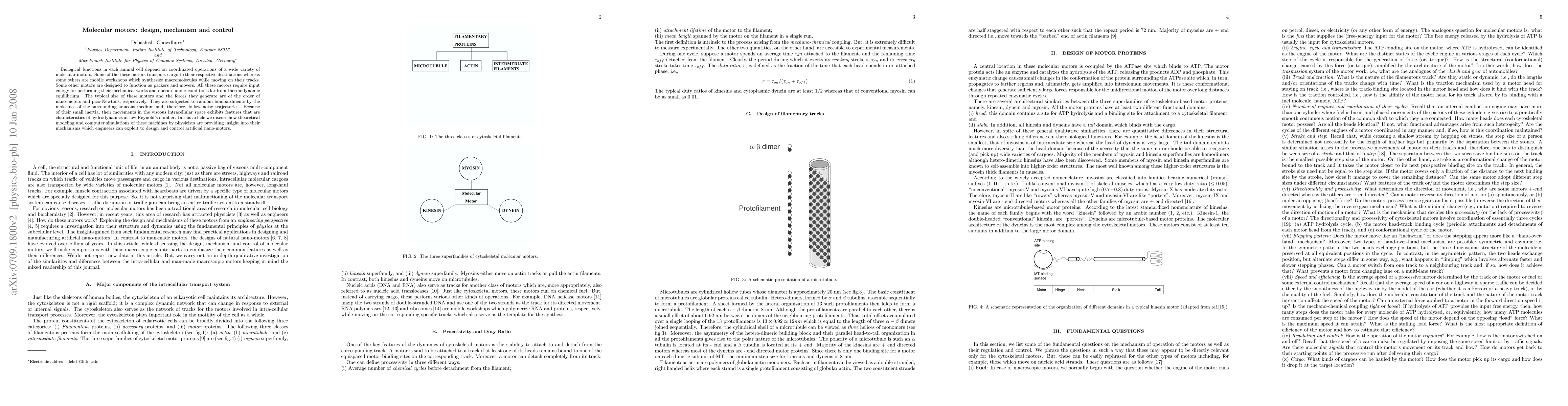 This paper explores the mechanisms and control of biological molecular motors, emphasizing their diverse functions and nanoscale operations. It highlights how theoretical modeling and simulations are aiding in the design and control of artificial nano-motors.