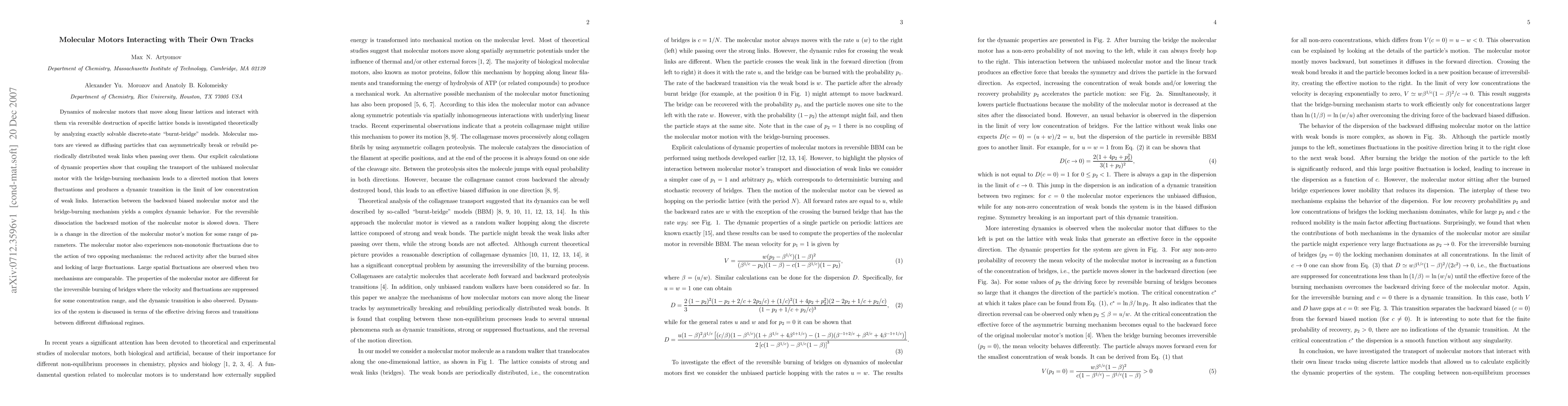 This paper investigates the dynamics of molecular motors that move along lattices and interact with them via the reversible destruction of specific lattice bonds, termed "burnt-bridge" models. The study reveals that coupling the motor's transport with the bridge-burning mechanism leads to directed motion and dynamic transitions, while backward-biased motors exhibit complex behaviors including changes in motion direction and non-monotonic fluctuations.
