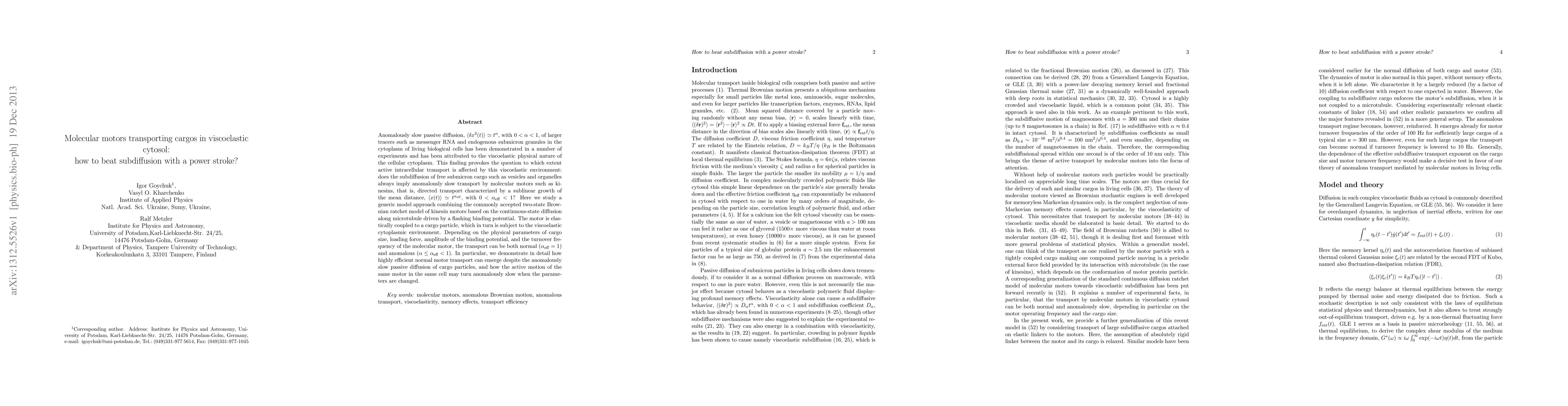 This paper investigates how molecular motors like kinesins can achieve normal transport rates despite the subdiffusive environment of viscoelastic cytoplasm. It demonstrates that under certain conditions, motors can overcome subdiffusion and transport cargoes normally, while under different conditions, they may exhibit anomalously slow transport.