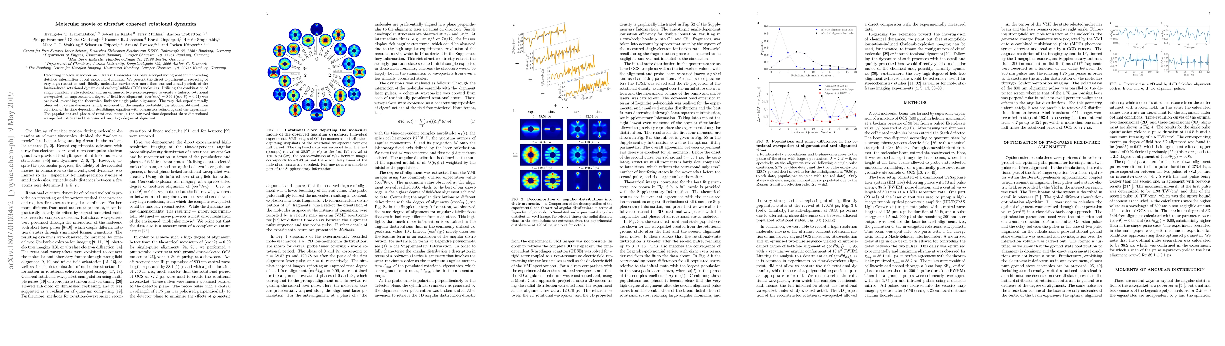 This paper reports the direct experimental recording of high-resolution molecular movies of laser-induced rotational dynamics in carbonylsulfide (OCS) molecules, achieving unprecedented field-free alignment. The study combines single-quantum-state selection and a tailored two-pulse sequence to observe the quantum dynamics in detail.