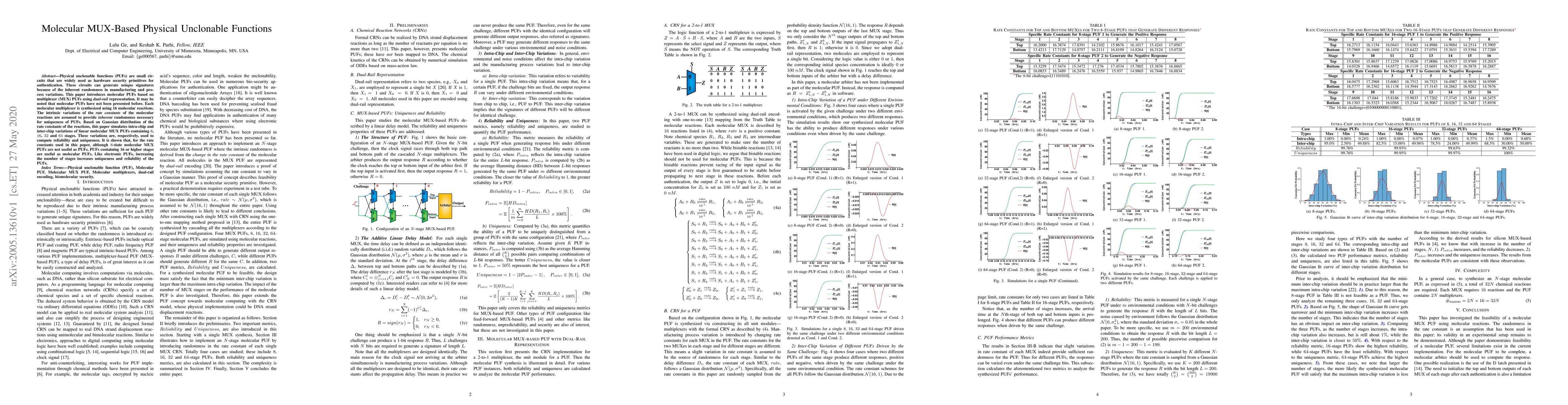 Researchers created molecular PUFs using multiplexers with varying stages to generate unique signatures based on manufacturing variations. Increasing the number of stages improves uniqueness and reliability.
