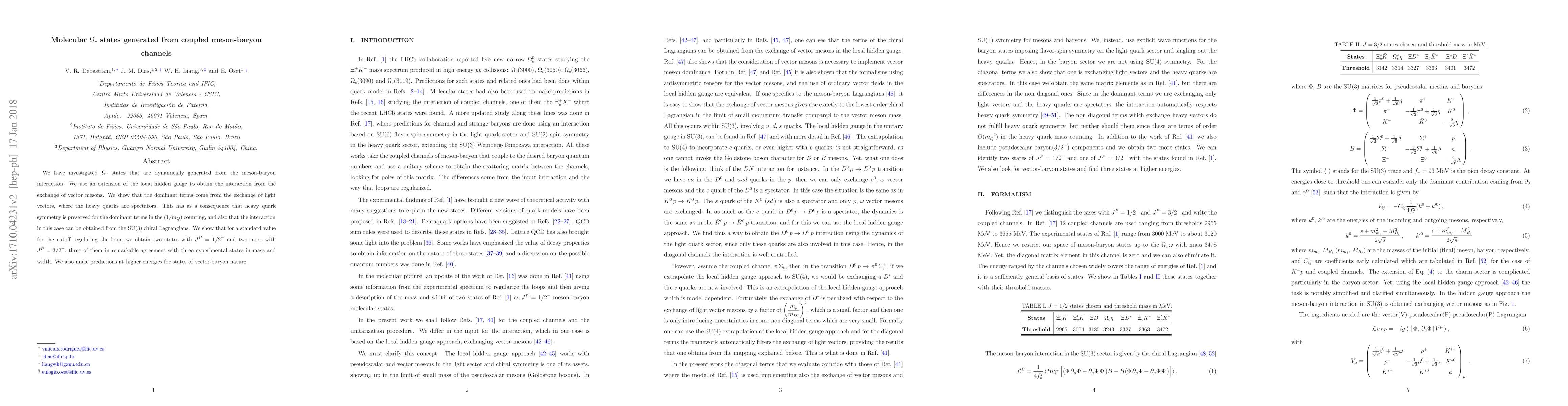 We have investigated $\Omega_c$ states that are dynamically generated from the meson-baryon interaction. We use an extension of the local hidden gauge to obtain the interaction from the exchange of vector mesons. We show that the dominant terms come from the exchange of light vectors, where the heavy quarks are spectators. This has as a consequence that heavy quark symmetry is preserved for the dominant terms in the $(1/m_Q)$ counting, and also that the interaction in this case can be obtained from the $\textrm{SU(3)}$ chiral Lagrangians. We show that for a standard value for the cutoff regulating the loop, we obtain two states with $J^{P}={1/2}^{-}$ and two more with $J^{P}={3/2}^{-}$, three of them in remarkable agreement with three experimental states in mass and width. We also make predictions at higher energies for states of vector-baryon nature.