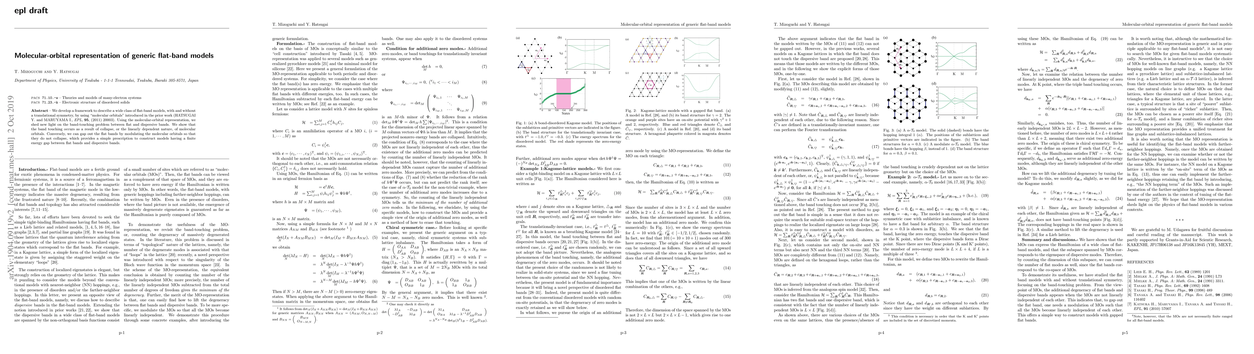 This research contributes to our understanding of flat-band models and their potential applications in condensed matter physics.