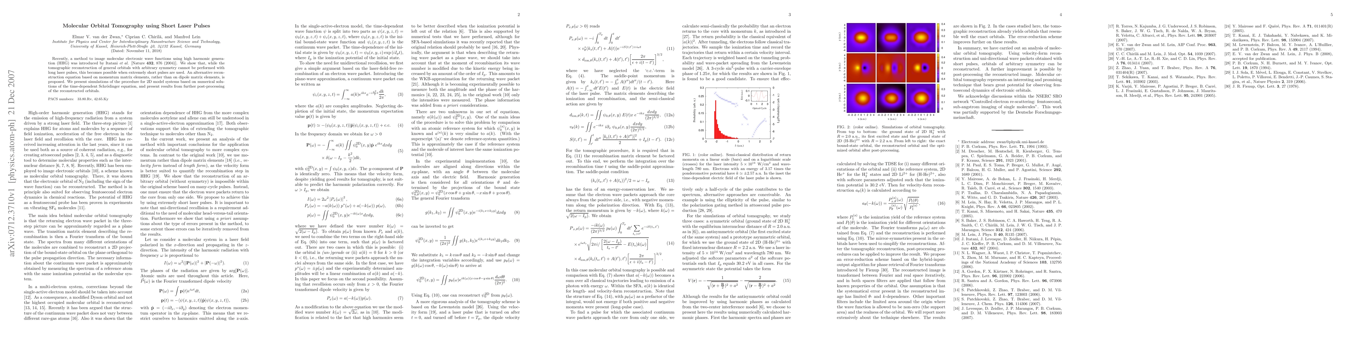 The paper presents a new approach for molecular orbital tomography using short laser pulses, which allows for the reconstruction of orbitals with arbitrary symmetry, and introduces an alternative reconstruction equation based on momentum matrix elements.
