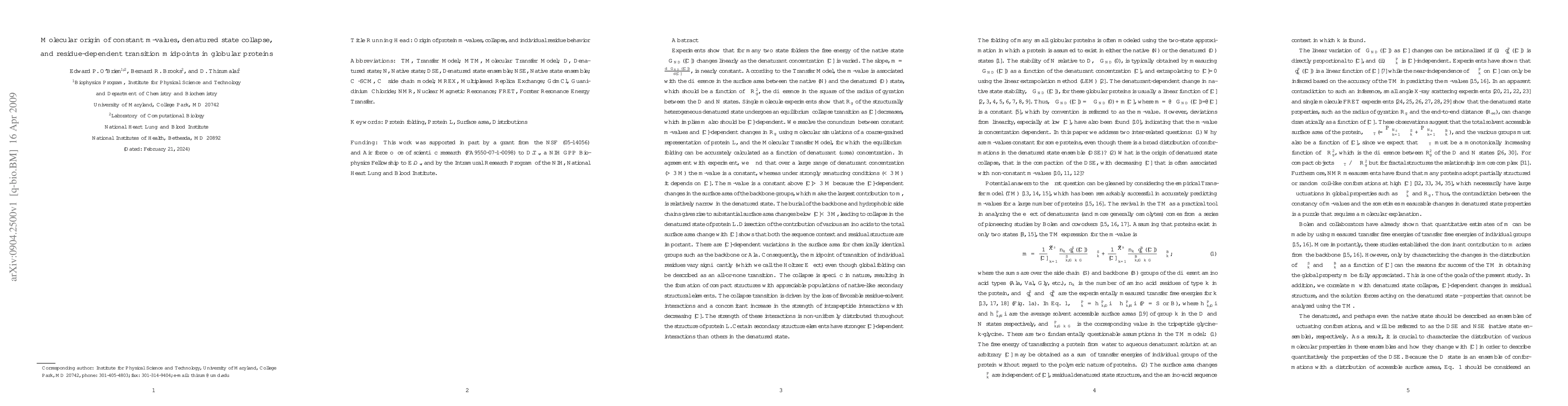 This paper investigates the molecular basis for constant m-values in protein folding, revealing that the m-value remains constant at high denaturant concentrations due to limited surface area changes in the denatured state. It also explains residue-dependent transition midpoints and denatured state collapse driven by changes in residue-solvent interactions and intrapeptide interactions.