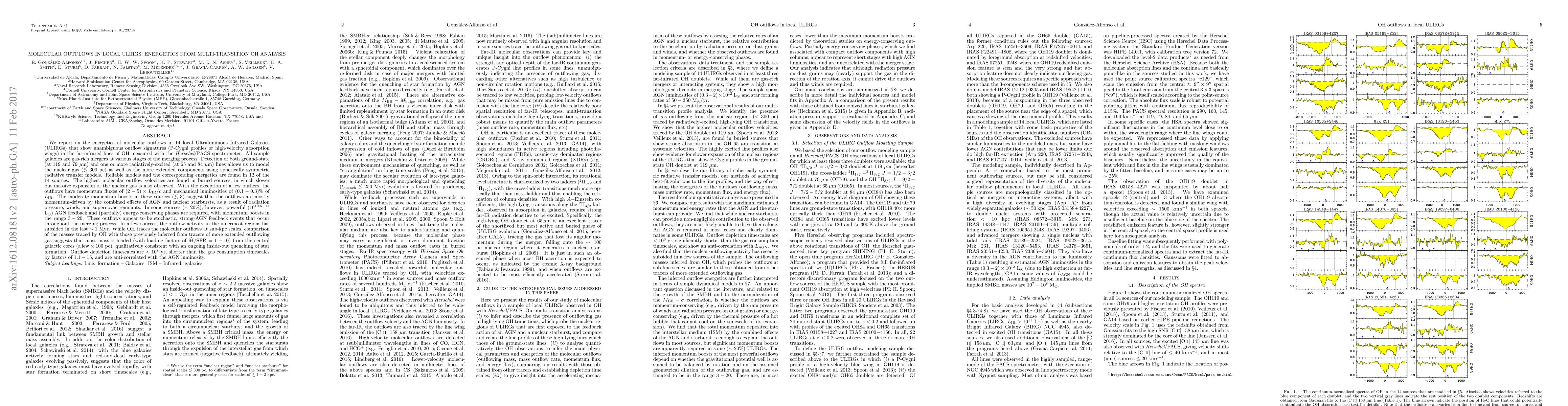 This study investigates the energetics of molecular outflows in 14 local ULIRGs using OH lines detected by Herschel/PACS, revealing that outflows are primarily driven by AGN and nuclear starbursts. The outflows show varying momentum and mechanical luminosity, with some requiring powerful AGN feedback.