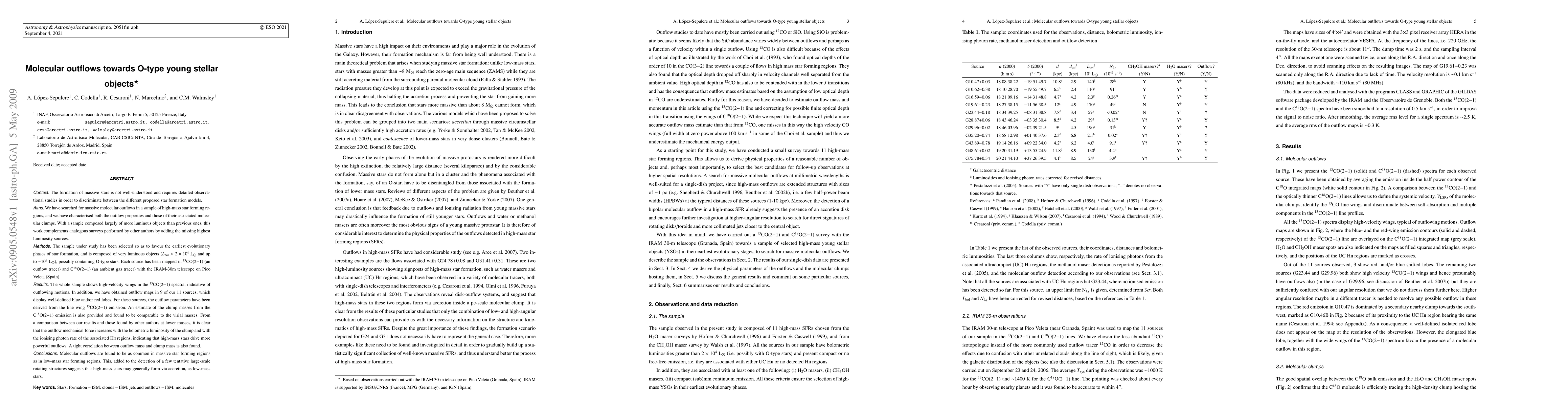This study investigates massive molecular outflows in high-mass star-forming regions, revealing that outflows are more powerful in luminous O-type stars, correlating with higher bolometric luminosity and ionising photon rates. The findings suggest that high-mass star formation may proceed via accretion similar to low-mass star formation.