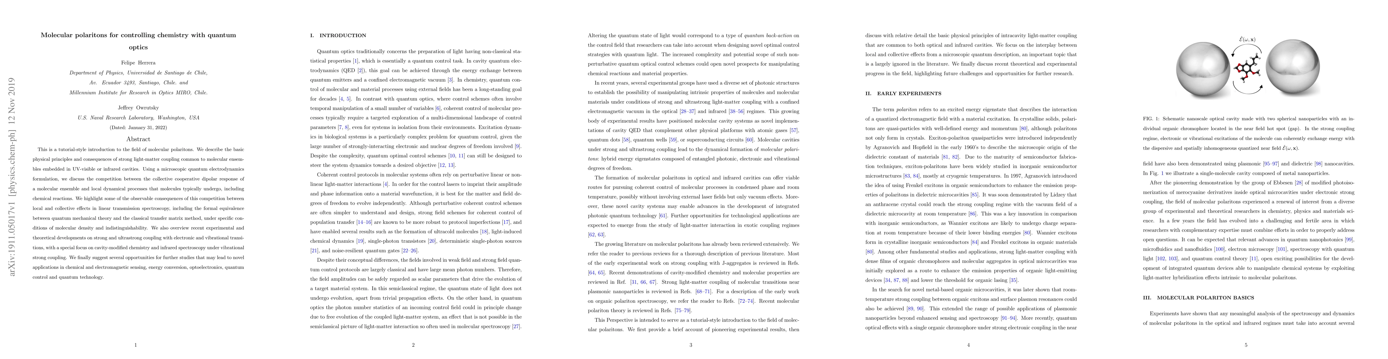 This paper introduces molecular polaritons, discussing the principles of strong light-matter coupling in molecular ensembles within cavities. It explores the competition between collective dipolar responses and local molecular processes, including chemical reactions, and suggests potential applications in various fields such as sensing and quantum technology.