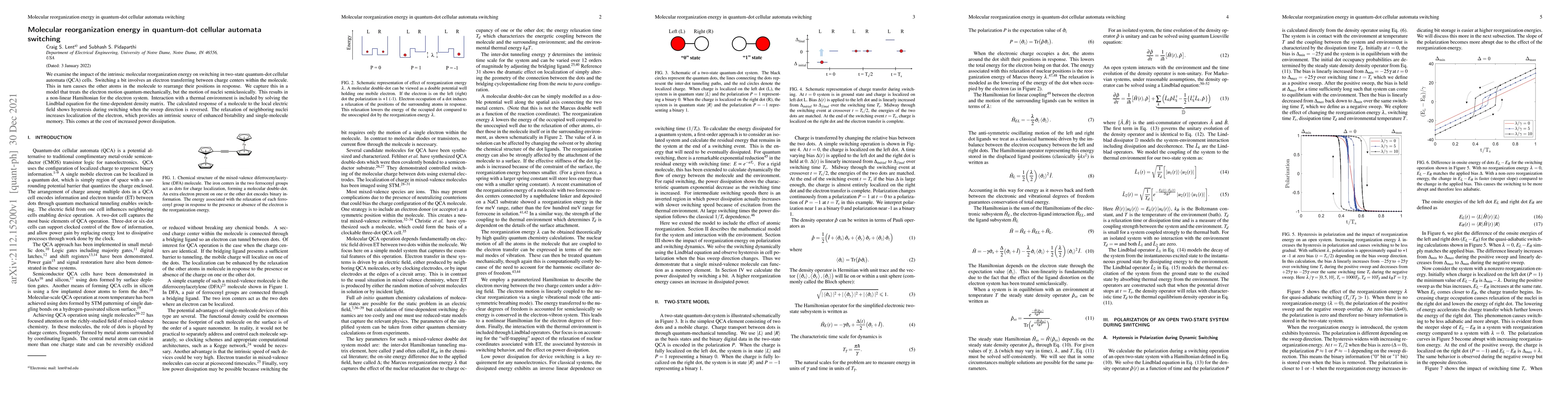 The research highlights the importance of molecular reorganization energy in quantum-dot cellular automata switching.