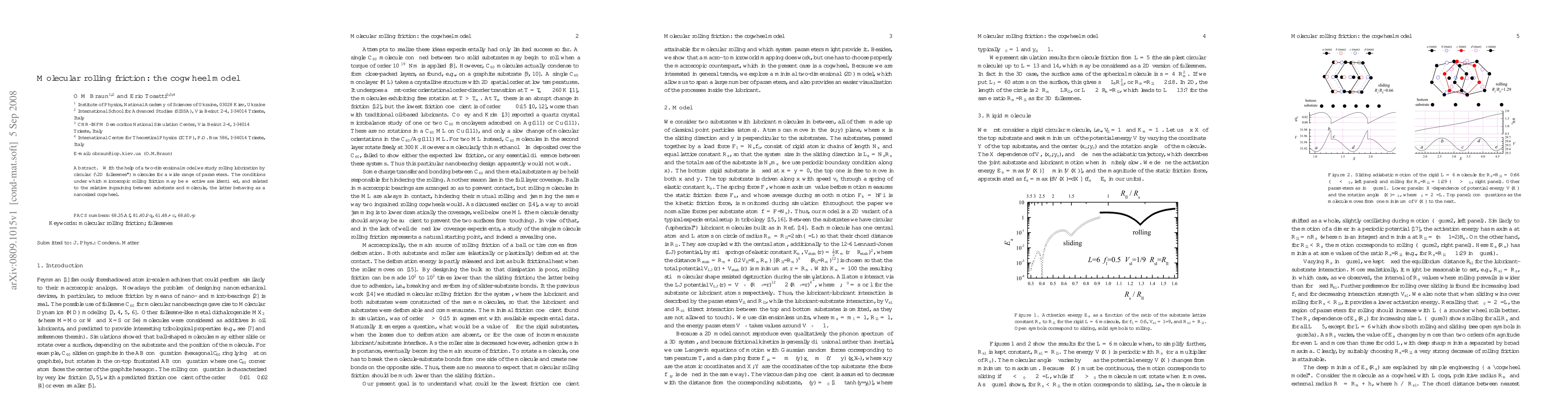 This paper investigates the rolling lubrication mechanism using a two-dimensional model of circular molecules, identifying conditions for effective microscopic rolling friction linked to the interaction between the molecule and substrate, likened to a nanosized cogwheel. The study highlights the role of molecular ingraining in reducing friction.