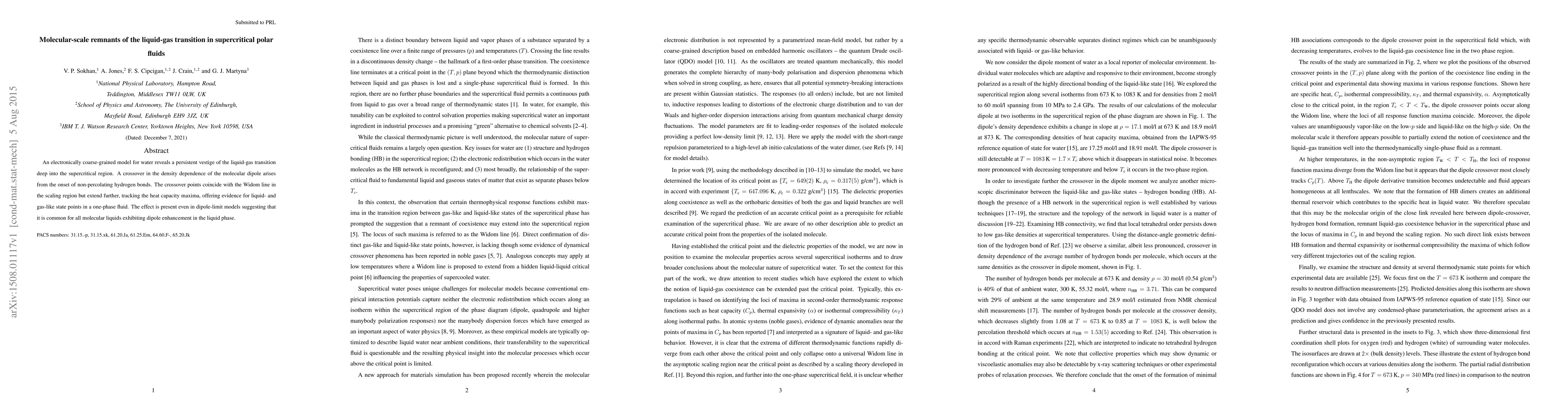 An electronically coarse-grained model for water reveals a persistent vestige of the liquid-gas transition deep into the supercritical region. A crossover in the density dependence of the molecular dipole arises from the onset of non-percolating hydrogen bonds. The crossover points coincide with the Widom line in the scaling region but extend further, tracking the heat capacity maxima, offering evidence for liquid- and gas-like state points in a "one-phase" fluid. The effect is present even in dipole-limit models suggesting that it is common for all molecular liquids exhibiting dipole enhancement in the liquid phase.