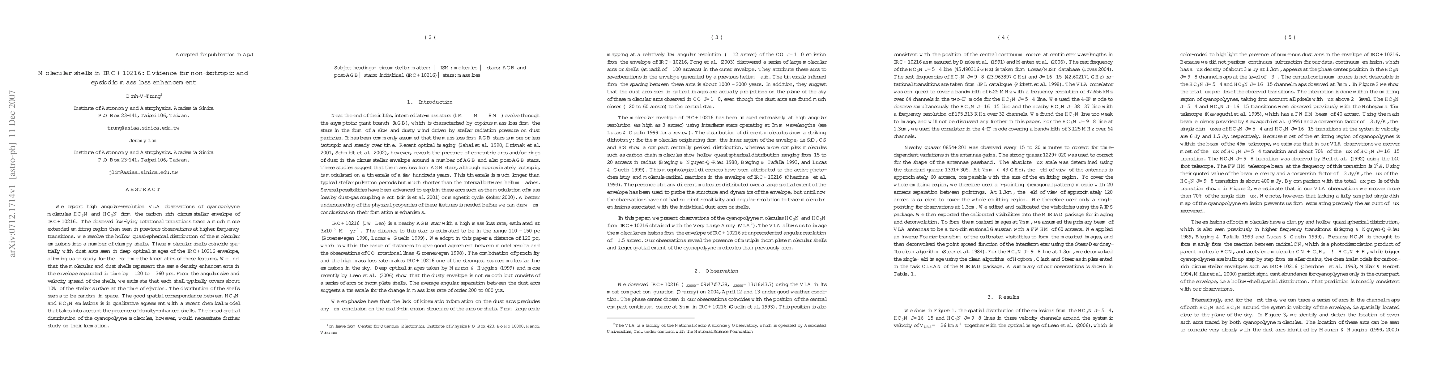 High angular-resolution VLA observations reveal extended molecular shells in IRC+10216's circumstellar envelope, indicating non-isotropic and episodic mass loss enhancements. The shells, composed of cyanopolyyne molecules, show a random spatial distribution and episodic ejections separated by 120 to 360 years.