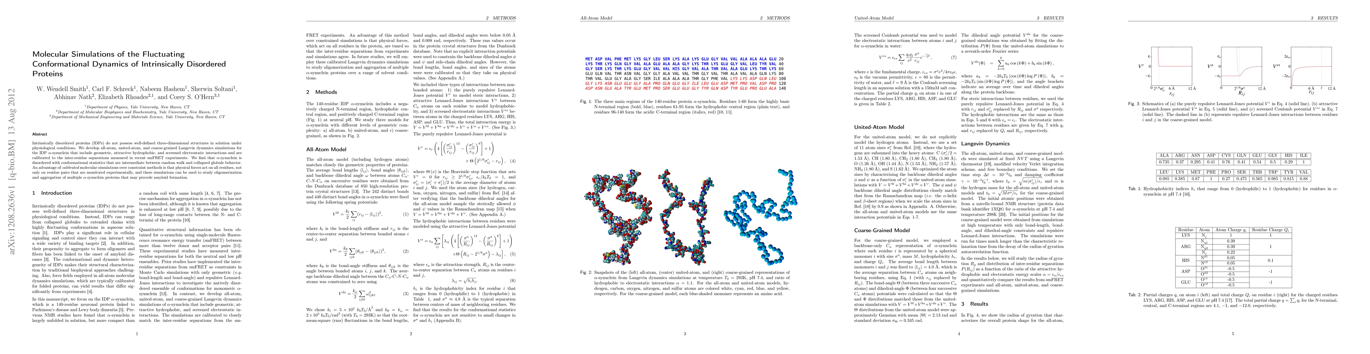 This paper develops molecular simulations of intrinsically disordered protein alpha-synuclein, revealing its conformational dynamics that lie between random walk and collapsed globule behavior. The simulations, calibrated to experimental data, allow for the study of protein oligomerization and aggregation processes.
