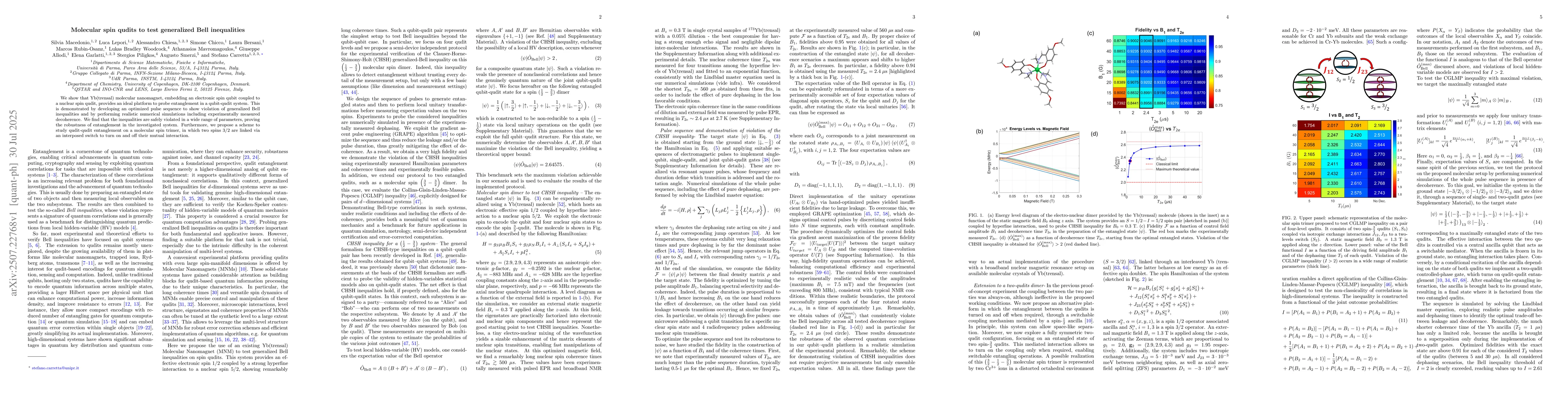 We show that Yb(trensal) molecular nanomagnet, embedding an electronic spin qubit coupled to a nuclear spin qudit, provides an ideal platform to probe entanglement in a qubit-qudit system.This is demonstrated by developing an optimized pulse sequence to show violation of generalized Bell inequalities and by performing realistic numerical simulations including experimentally measured decoherence. We find that the inequalities are safely violated in a wide range of parameters, proving the robustness of entanglement in the investigated system. Furthermore, we propose a scheme to study qudit-qudit entanglement on a molecular spin trimer, in which two spins 3/2 are linked via an interposed switch to turn on and off their mutual interaction.