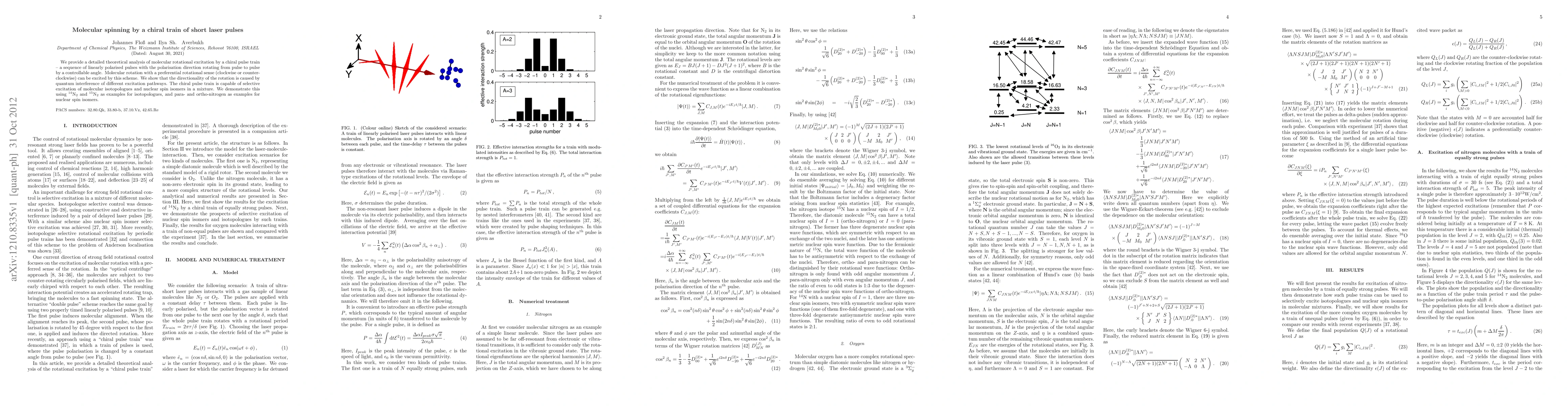 The novelty of this work lies in the introduction and detailed analysis of chiral pulse trains for selective molecular rotation excitation, providing a new approach to manipulate molecular behavior for applications in molecular spectroscopy and quantum control.
