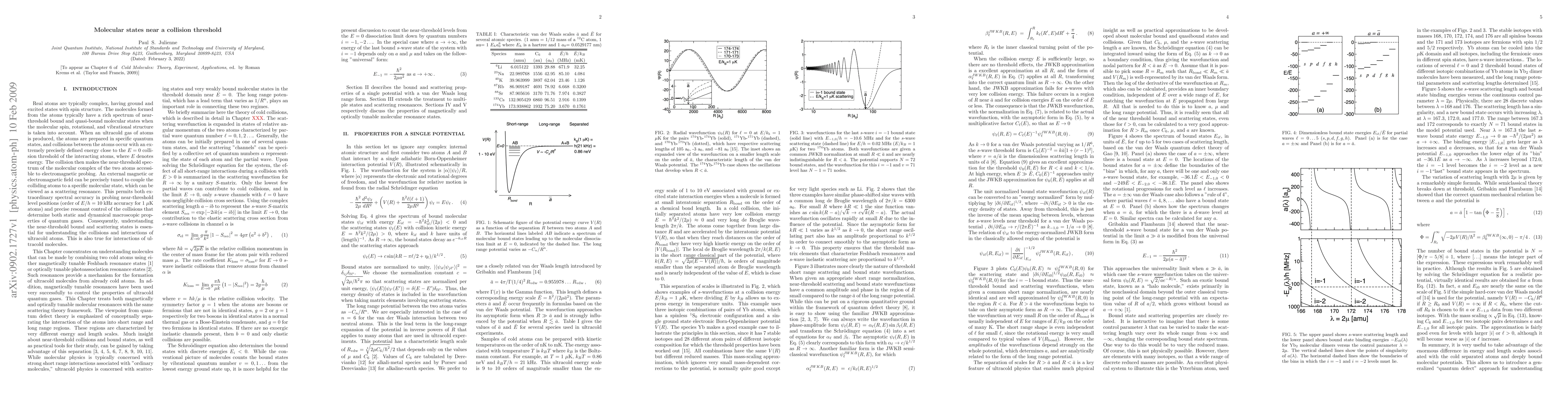 This chapter summarizes the properties of near-threshold molecular states that can be formed from ultracold atoms. The properties of the states for a single potential are characterized for different partial waves using the concepts of quantum defect theory for a van der Waals potential. Examples are given for various isotopes of the Yb_2 molecule. Magnetically tunable Feshbach resonances or photoassociation resonances are characterized by the multichannel version of the theory. Examples of the latter are given for the KRb molecule.