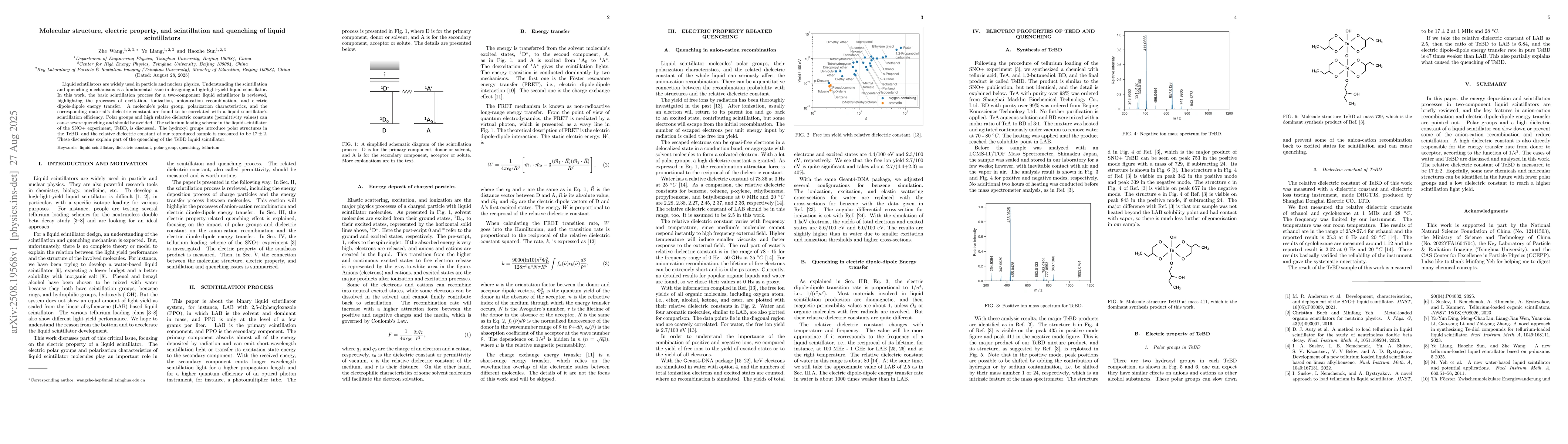 Liquid scintillators are widely used in particle and nuclear physics. Understanding the scintillation and quenching mechanisms is a fundamental issue in designing a high-light-yield liquid scintillator. In this work, the basic scintillation process for a two-component liquid scintillator is reviewed, highlighting the processes of excitation, ionization, anion-cation recombination, and electric dipole-dipole energy transfer. A molecule's polar group, polarization characteristics, and the corresponding material's dielectric constant are found to be correlated with a liquid scintillator's scintillation efficiency. Polar groups and high relative dielectric constants (permittivity values) can cause severe quenching and should be avoided. The tellurium loading scheme in the liquid scintillator of the SNO+ experiment, TeBD, is discussed. The hydroxyl groups introduce polar structures in the TeBD, and the relative dielectric constant of our reproduced sample is measured to be $17\pm2$. These discussions explain part of the quenching of the TeBD liquid scintillator.