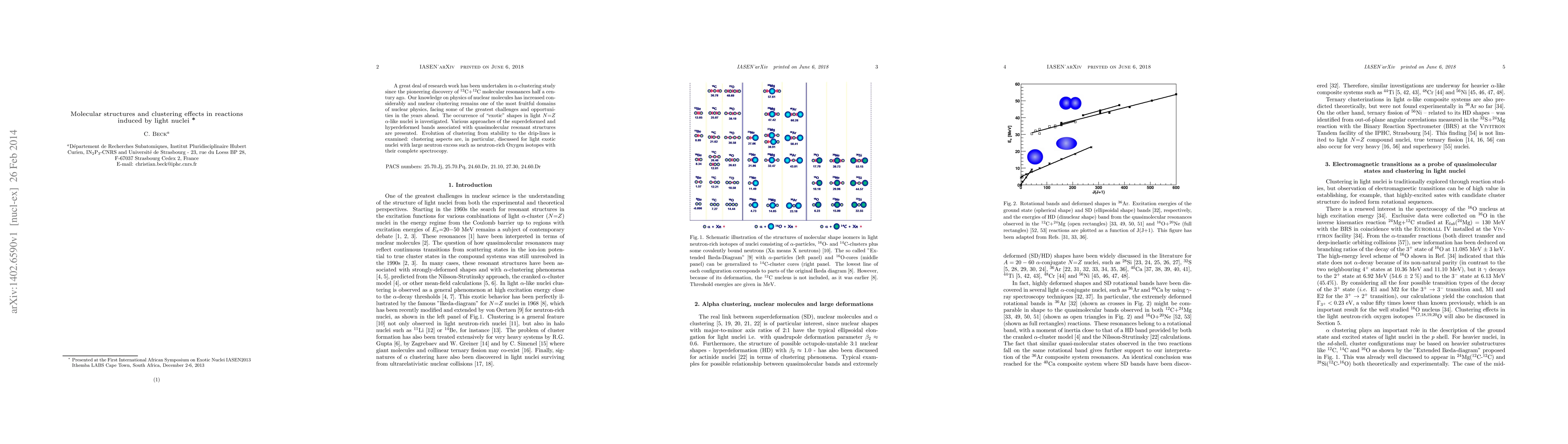 $\alpha$-clustering study since the pioneering discovery of $^{12}$C+$^{12}$C molecular resonances half a century ago. Our knowledge on physics of nuclear molecules has increased considerably and nuclear clustering remains one of the most fruitful domains of nuclear physics, facing some of the greatest challenges and opportunities in the years ahead. The occurrence of "exotic" shapes in light $N$=$Z$ $\alpha$-like nuclei is investigated. Various approaches of the superdeformed and hyperdeformed bands associated with quasimolecular resonant structures are presented. Evolution of clustering from stability to the drip-lines is examined: clustering aspects are, in particular, discussed for light exotic nuclei with large neutron excess such as neutron-rich Oxygen isotopes with their complete spectrocopy.